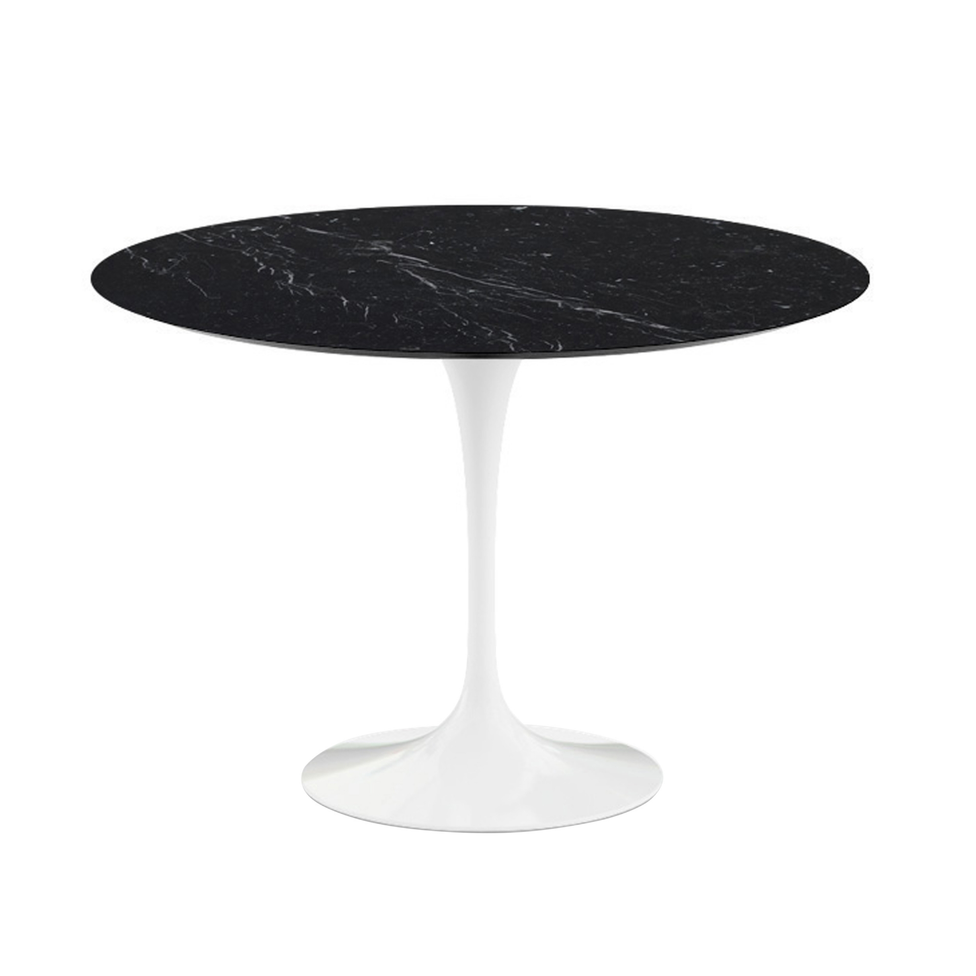 Knoll - Saarinen Round Table - Matbord, Ø 107 cm, Vitt underrede, skiva i matt svart Marquina marmor - Matbord - Eero Saarinen