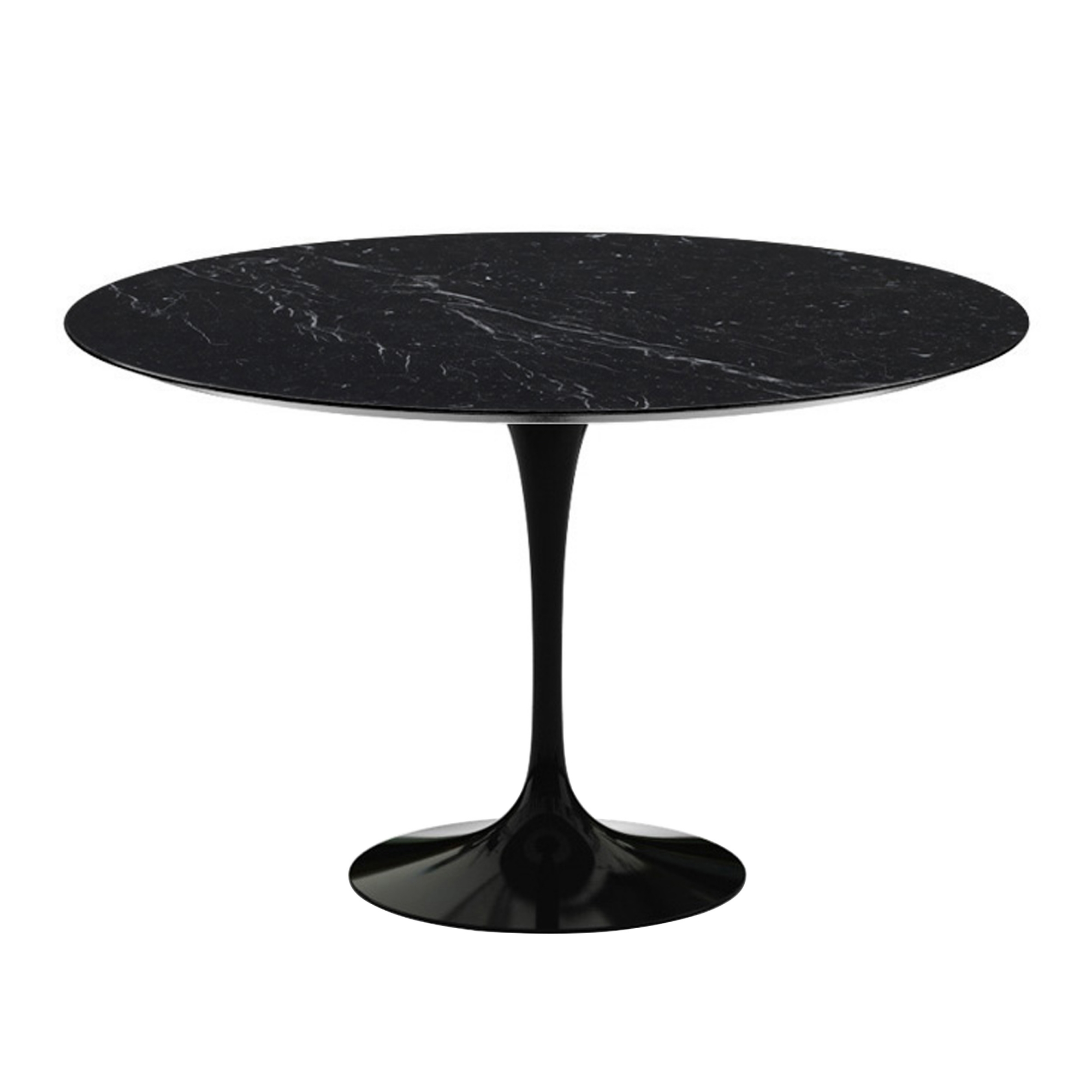 Knoll - Saarinen Round Table - Matbord, Ø 120 cm, Svart underrede, skiva i matt svart Marquina marmor - Matbord - Eero Saarinen - Svart - Metall/Sten