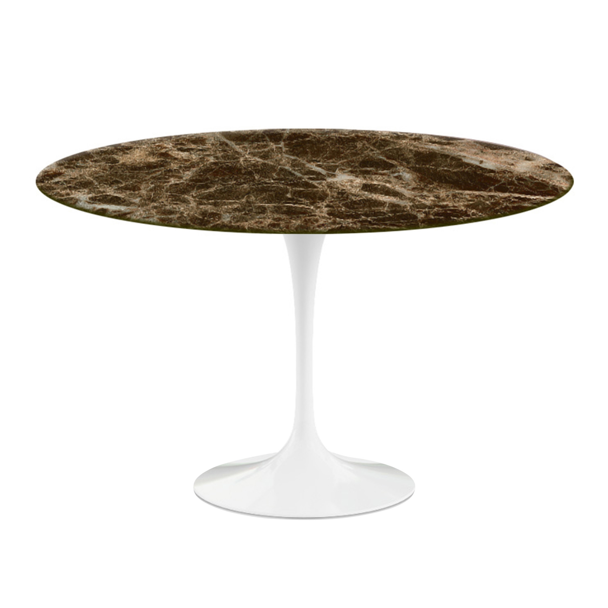 Knoll - Saarinen Round Table - Matbord, Ø 120 cm, Vitt underrede, skiva i matt brun Emperador marmor - Matbord - Eero Saarinen