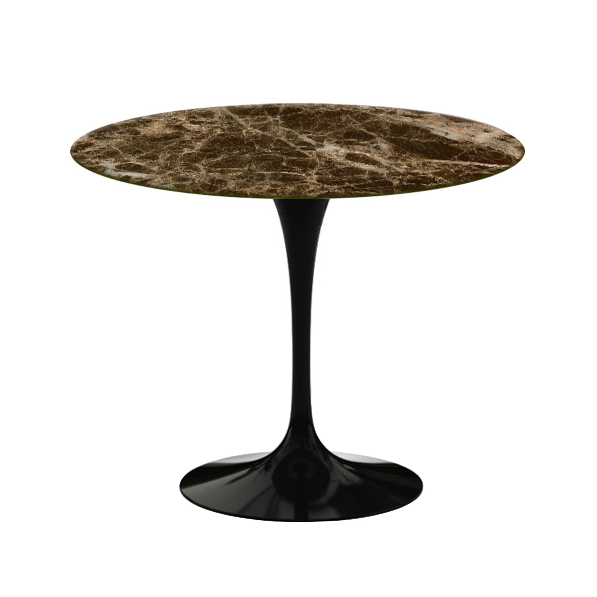 Knoll - Saarinen Round Table - Matbord, Ø 91 cm, Svart underrede, skiva i glansig brun Emperador marmor - Matbord - Eero Saarinen - Brun - Metall/Sten
