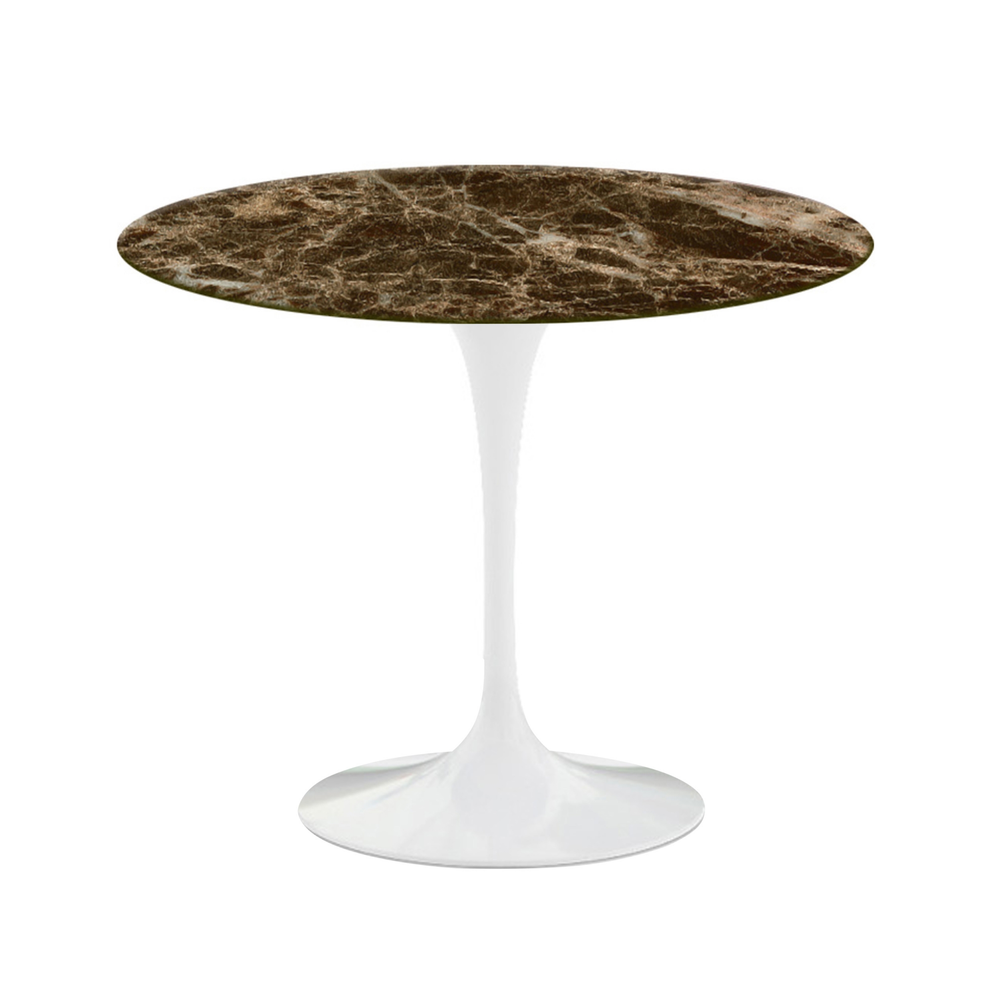 Knoll - Saarinen Round Table - Matbord, Ø 91 cm, Vitt underrede, skiva i glansig brun Emperador marmor - Matbord - Eero Saarinen