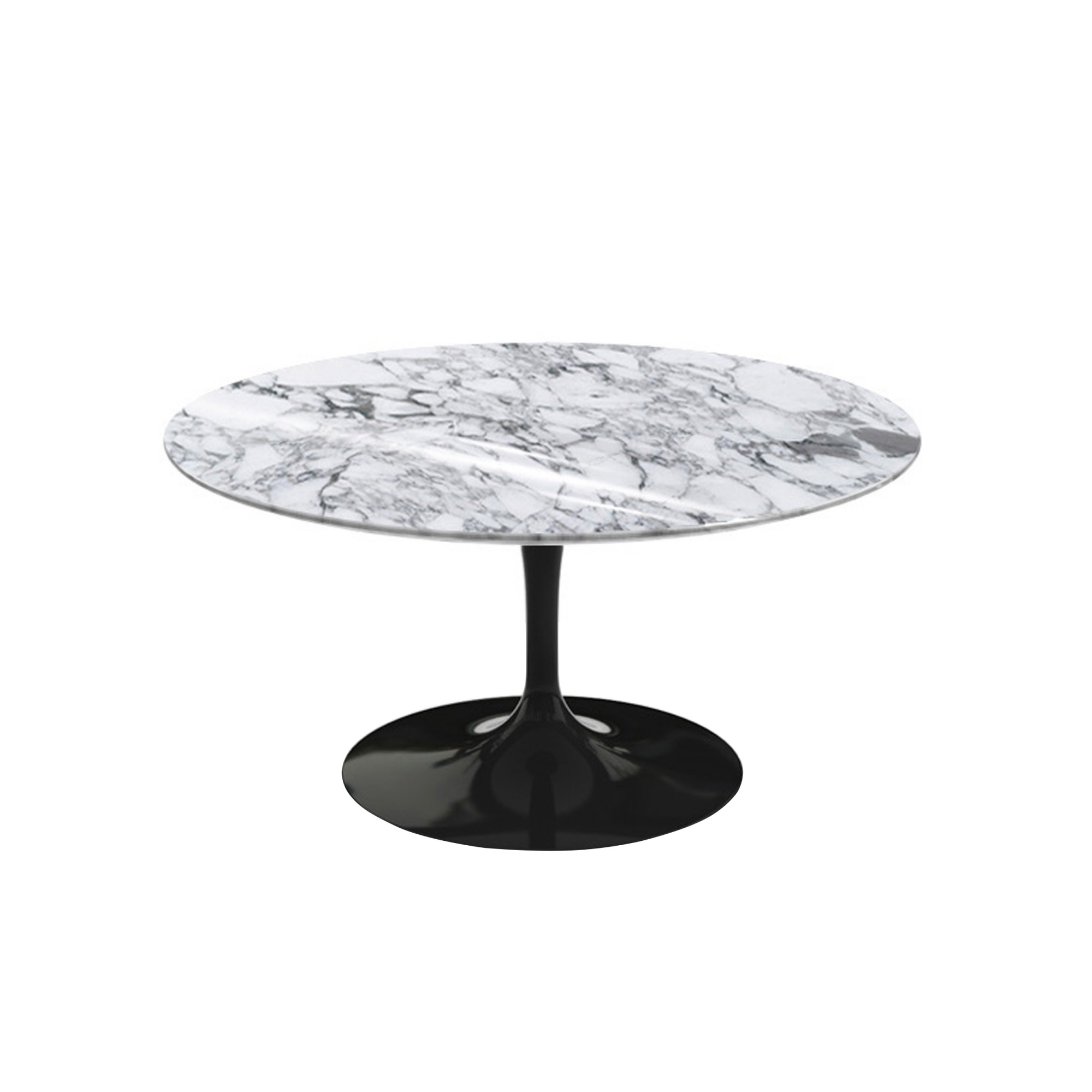 Knoll - Saarinen Round Table - Soffbord, Svart underrede, skiva i glansig vit Arabescato marmor, H: 38, Ø 91 - Soffbord - Eero Saarinen - Svart - Metall/Sten