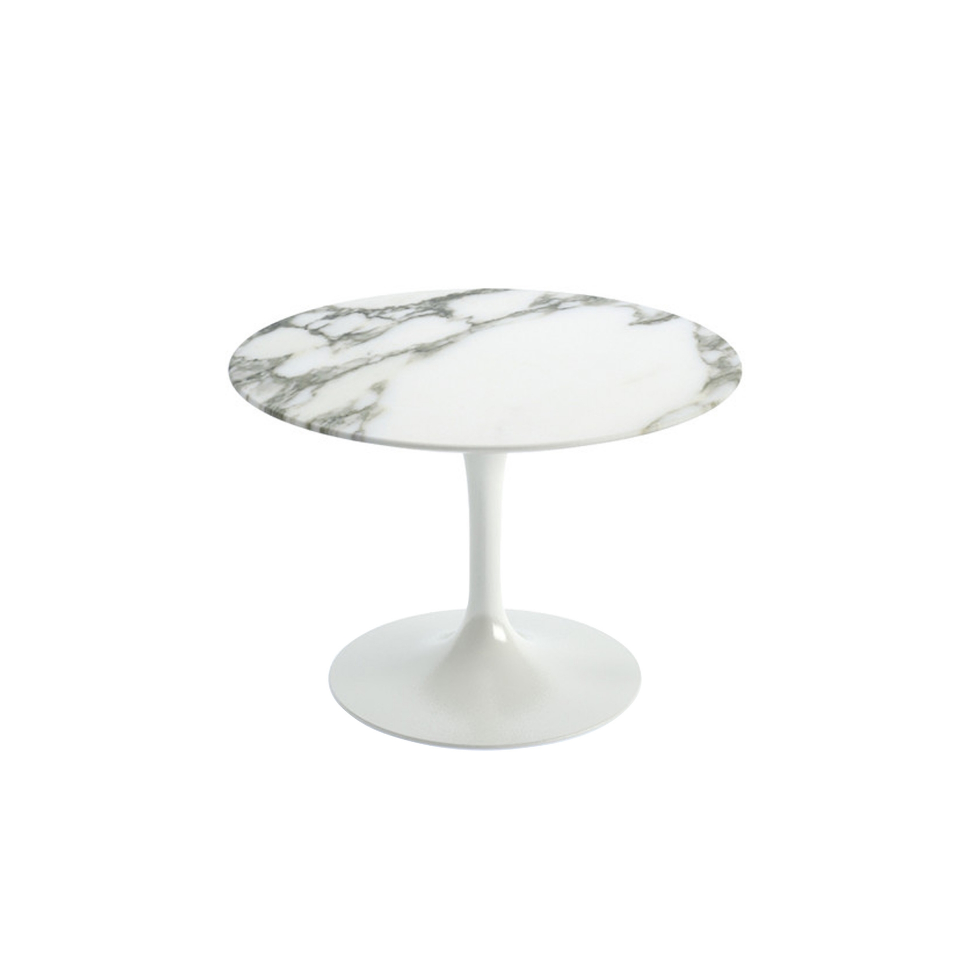 Knoll - Saarinen Round Table - Soffbord, Vitt underrede, skiva i glansig vit Arabescato marmor, H: 36, Ø 51 - Soffbord - Eero Saarinen - Vit - Metall/Sten