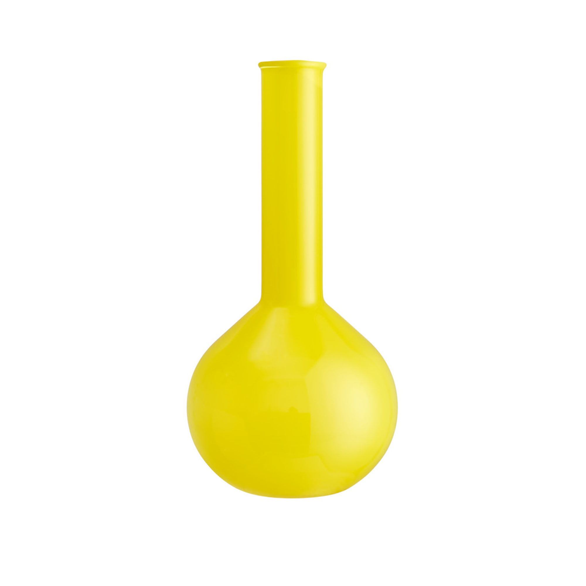 Med sin rena form och distinkta gula nyans är Labb vas 315 mm från Kosta Boda en del av en innovativ serie designad av Matti och Simon Klenell. Inspirerad av laboratorieglasets funktionella estetik är vasen både stilren och mångsidig, perfekt för att ge färg och karaktär till hemmets inredning. Munblåst i Kosta enligt gedigen hantverkstradition är denna vas lika vacker med snittblommor som den är som en skulptural inredningsdetalj. Dess moderna uttryck gör den till en elegant kontrast i minimalistiska miljöer eller en lekfull färgklick i en mer eklektisk stil.