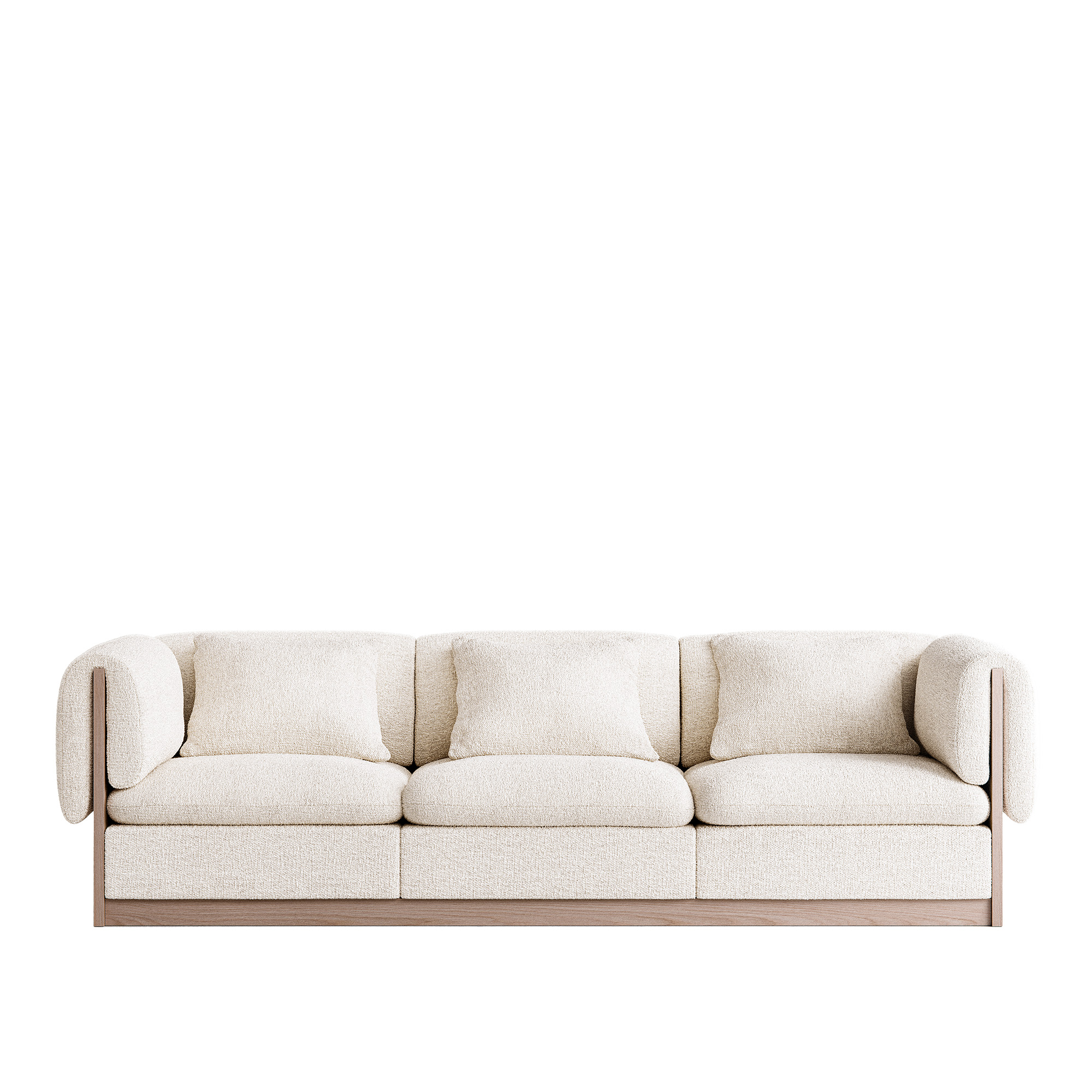 Länna Möbler - L.A. 3-Seater Sofa Inc. Arm-Rest Cushion, Light Oak Frame, Rhythm Ecru 102 (Textaafoam) - Soffor - Lotta Agaton - Vit - Metall/Trä/Textilmaterial