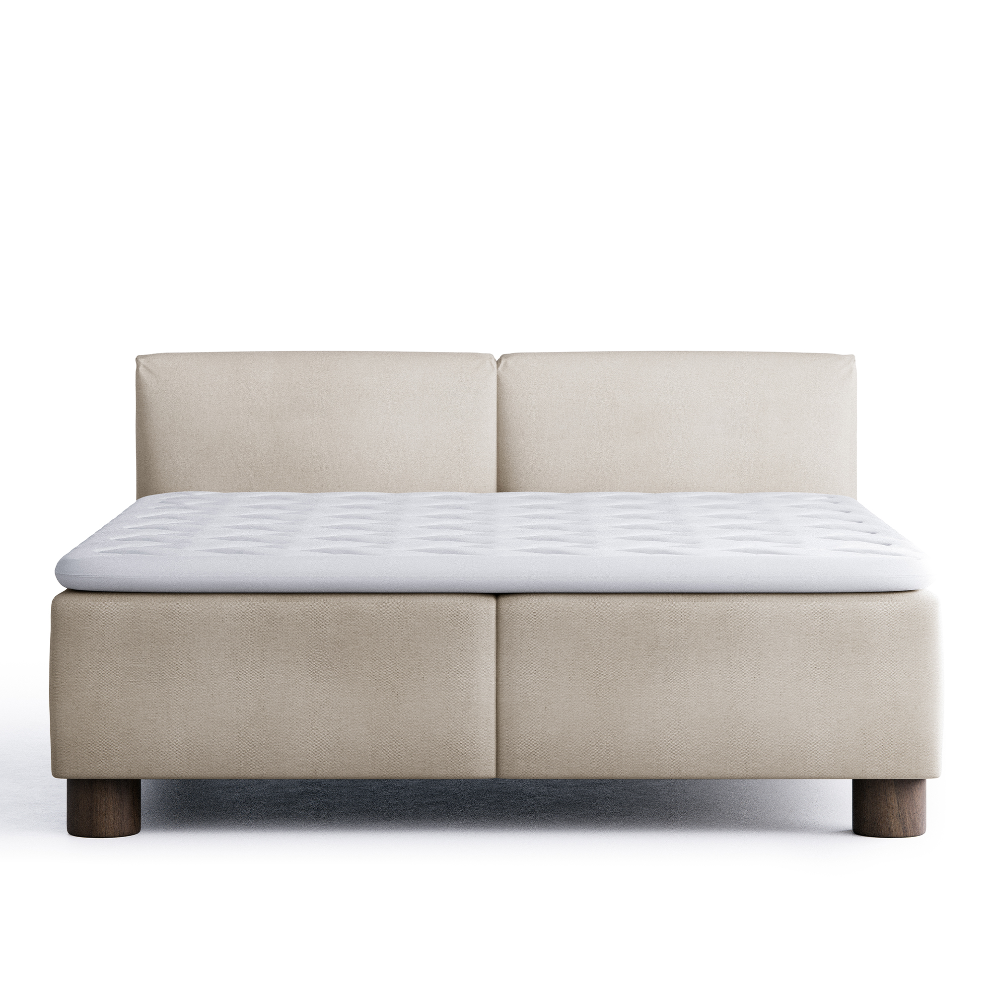 Englesson - Superior Kontinental Low Frame Firm 160Wx200L Pearl Dubbelsäng, Sängben Koniska Trä White 21 cm, Bäddmadrass Sense Plus - Sängar - Beige