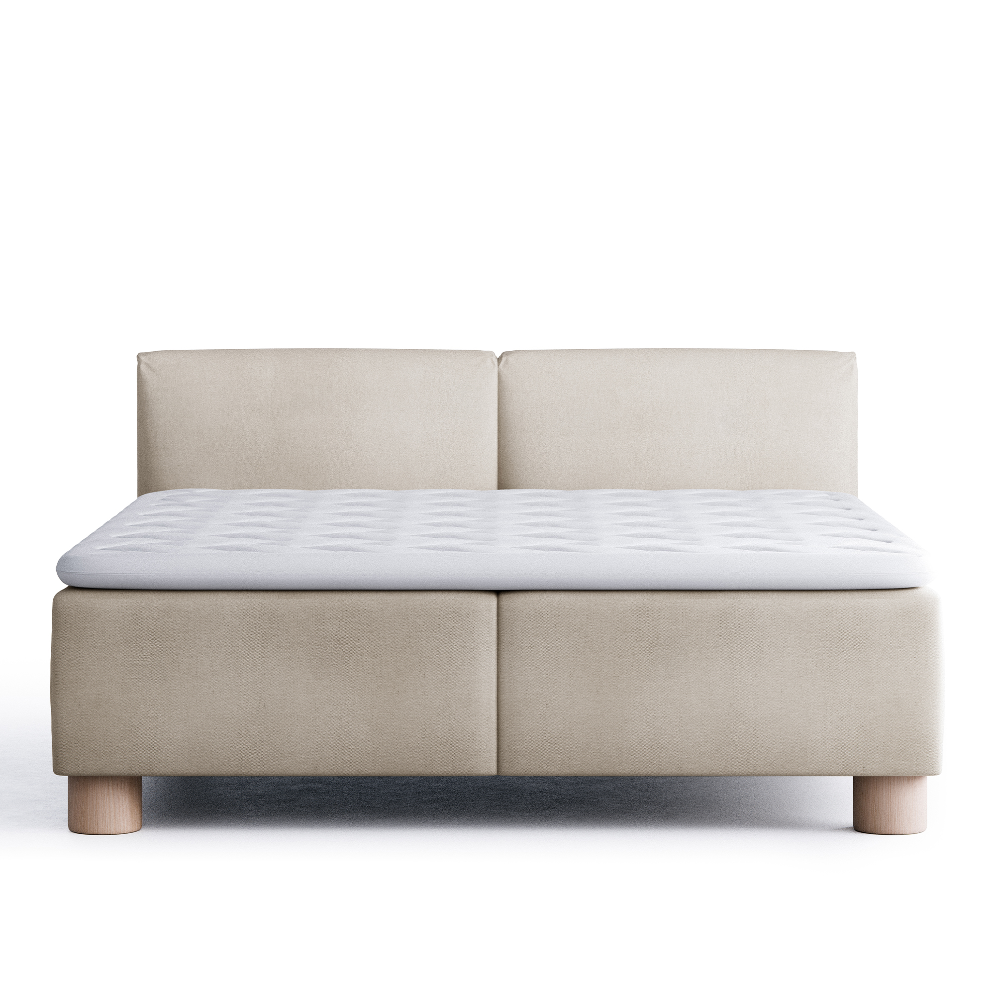 Englesson - Superior Kontinental Low Frame Firm 160Wx200L Pearl Dubbelsäng, Sängben Koniska Trä White 21 cm, Bäddmadrass Sense Plus - Sängar - Beige