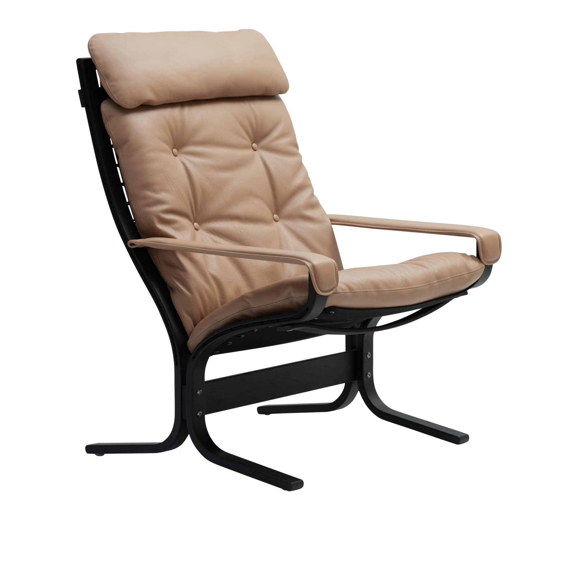 LK Hjelle - Siesta Classic High Black With Armrests Hemsen Anilin 22 Sand - Fåtöljer - Ingmar Relling - Beige - Läder/Naturmaterial/Trä