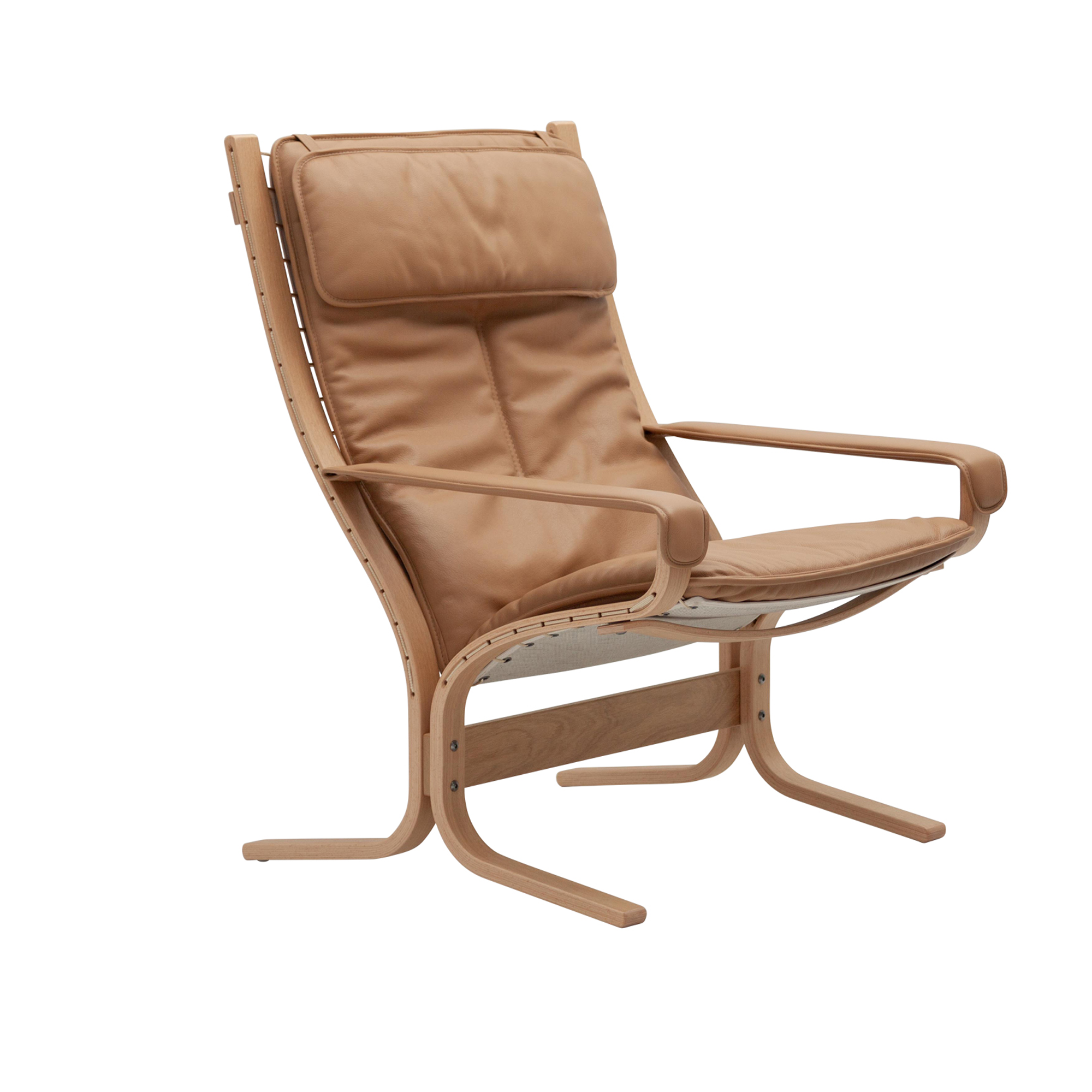 LK Hjelle - Siesta Fiora High With Armrests Hemsen Anilin 22 Sand - Fåtöljer - Ingmar Relling - Beige - Läder/Naturmaterial/Trä