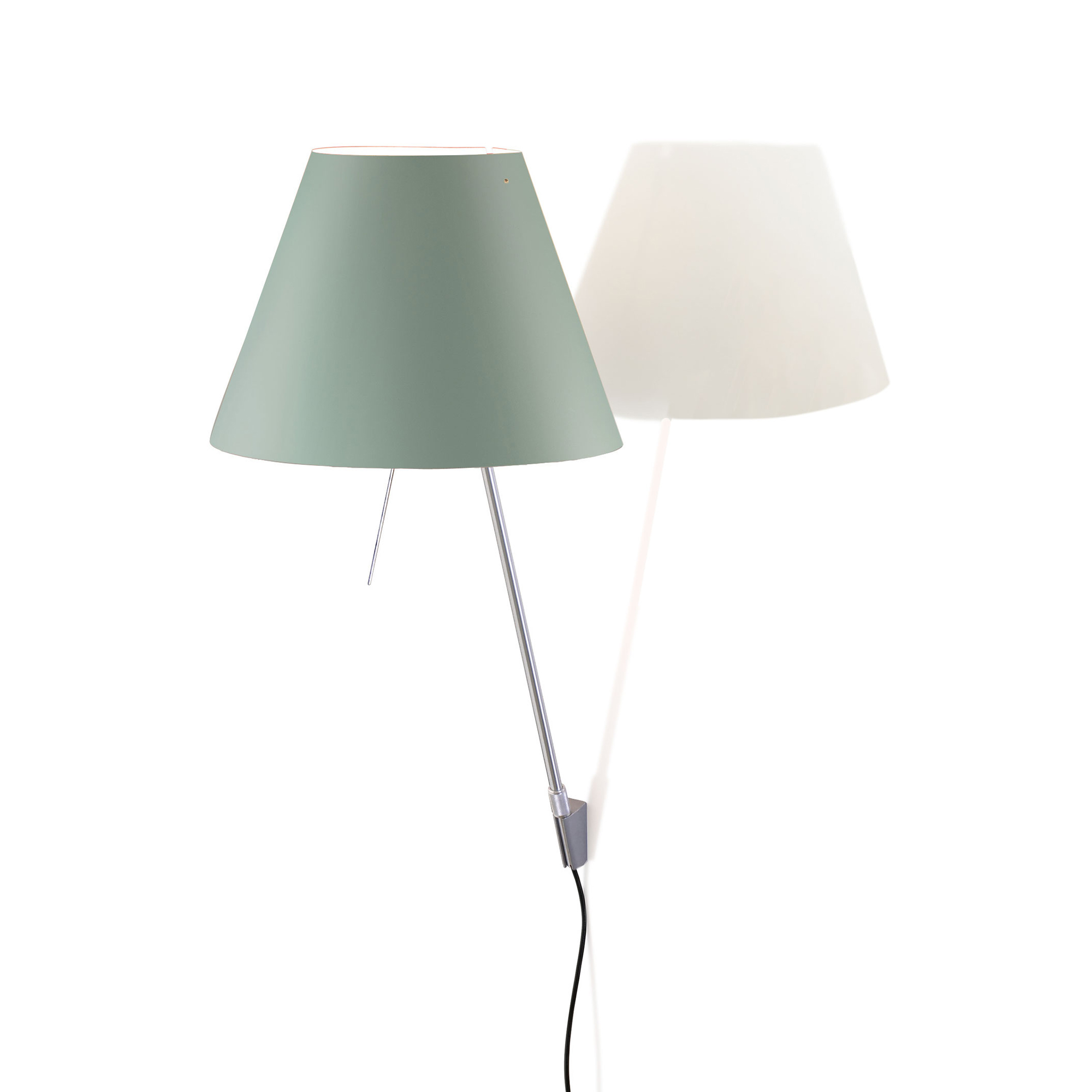 Vägglampan Costanza, designad av Paolo Rizzatto 1986 för det italienska företaget Luceplan, är en elegant skapelse som förenar klassisk design med modern teknik. Denna del av Costanza-kollektionen, som inkluderar allt från hänglampor till stående lampor, kännetecknas av sin slanka form som återspeglar det traditionella, medan den tekniska innovationen manifesteras genom en dimmerpinne som sticker ut under lampskärmen och som justerar ljusstyrkan i fyra nivåer. Med sin struktur i mattkromat aluminium och en lampskärm täckt av silkesliknande polykarbonat, erbjuder Costanza-lampan ett mjukt och inbjudande ljus. Den är idealisk som läslampa eller som belysning i ett fönster eller en korridor. Kollektionen omfattar varianter som bordslampor, taklampor och golvlampor.