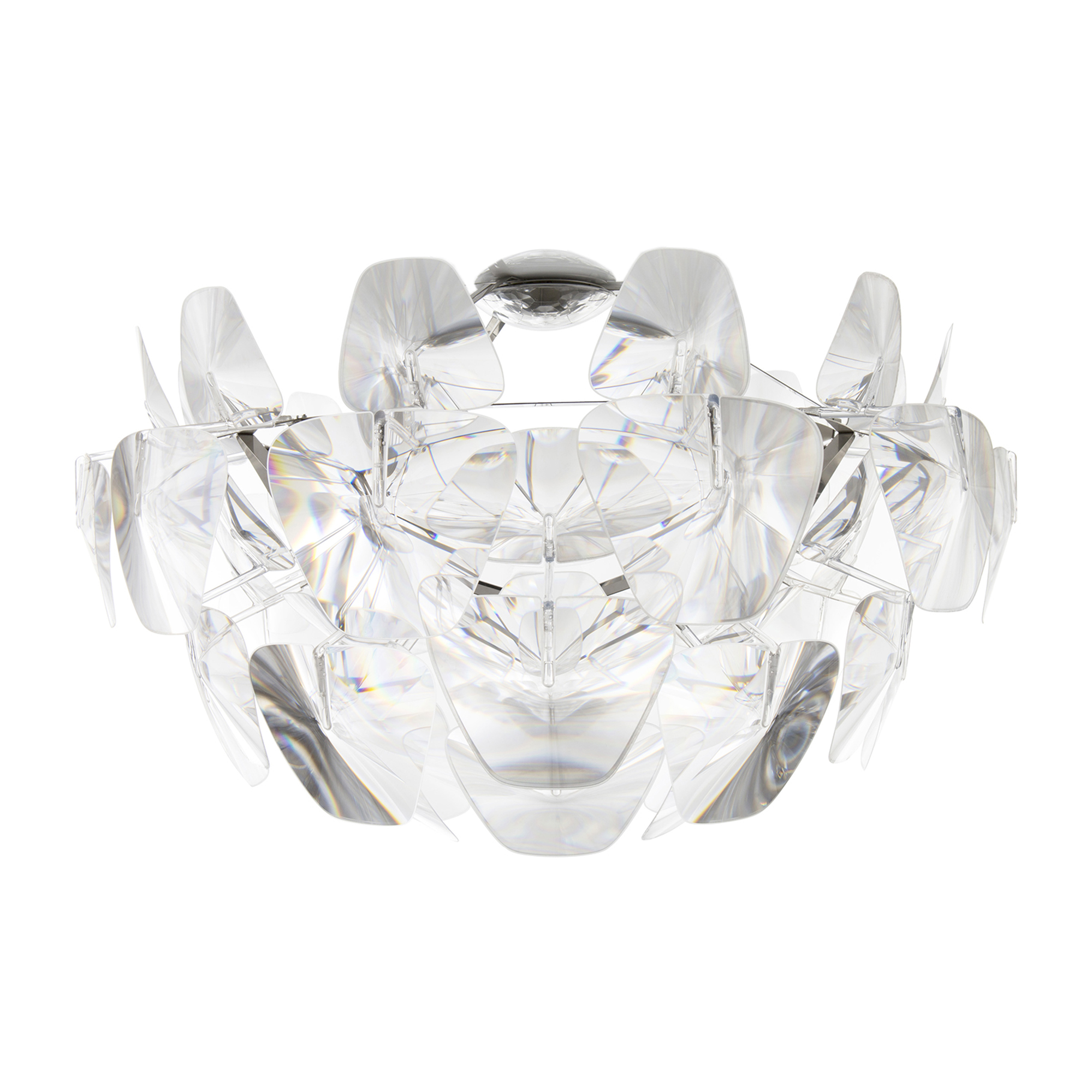 Hope är en serie armaturer från Luceplan, formgiven av Francisco Gomes Paz och Paolo Rizzatto. Hope är en modern tolkning av den klassiska ljuskronan, vars kristaller fått formen av kronblad i prismatiska linser av polykarbonat, som ger dramatiska och glittrande ljuseffekter. Ceiling är en plafond tillverkad i polerat rostfritt stål, med genomskinliga polykarbonatarmar och prismatiska linser av polykarbonat. Hope finns i flera olika modeller och storlekar, kontakta gärna vår kundtjänst för mer information.