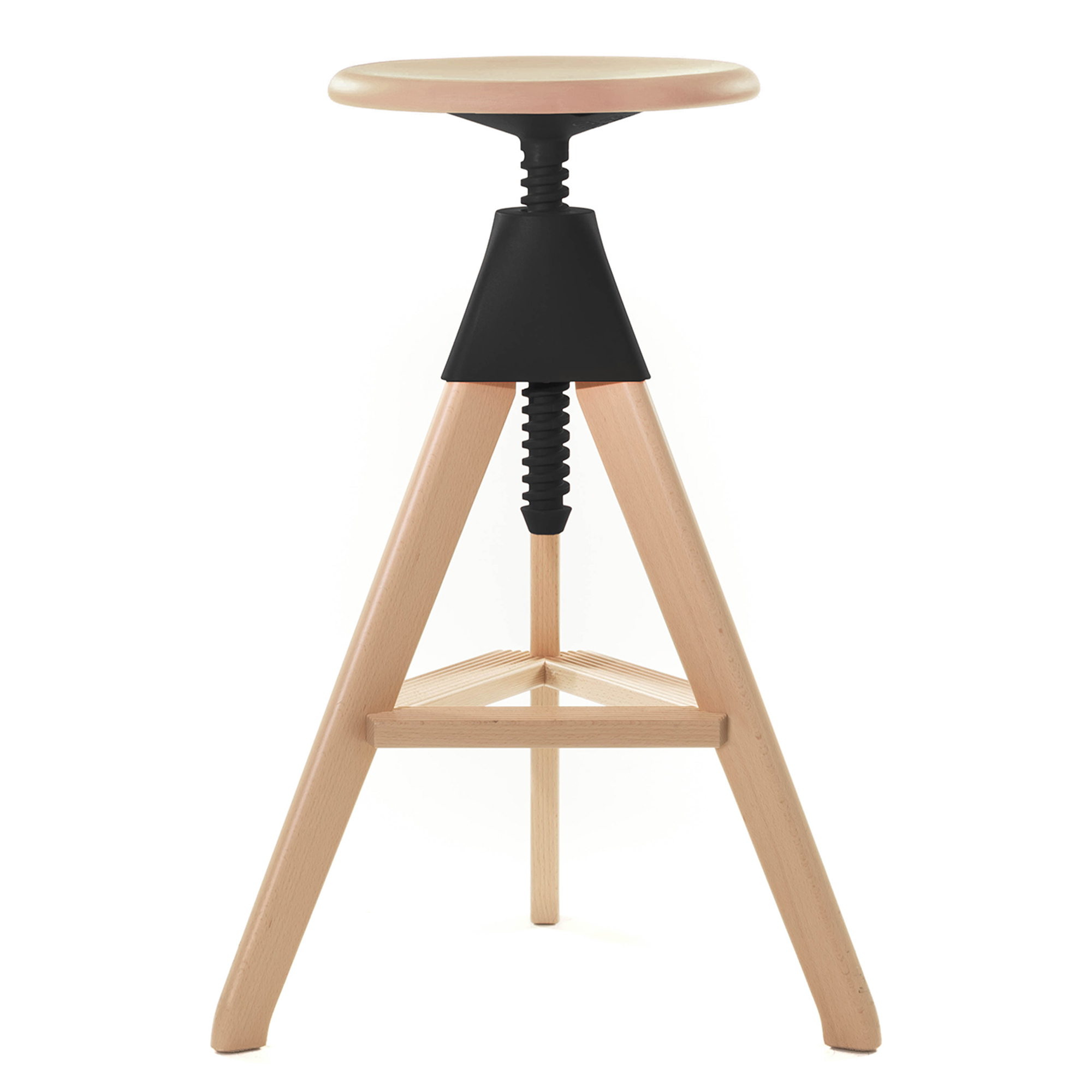 Magis - Tom - The Wild Bunch Stool H70/86 Natural base/Black joint/Natural seat - Barstolar - Konstantin Grcic - Svart - Trä/Syntetiskt/Plast