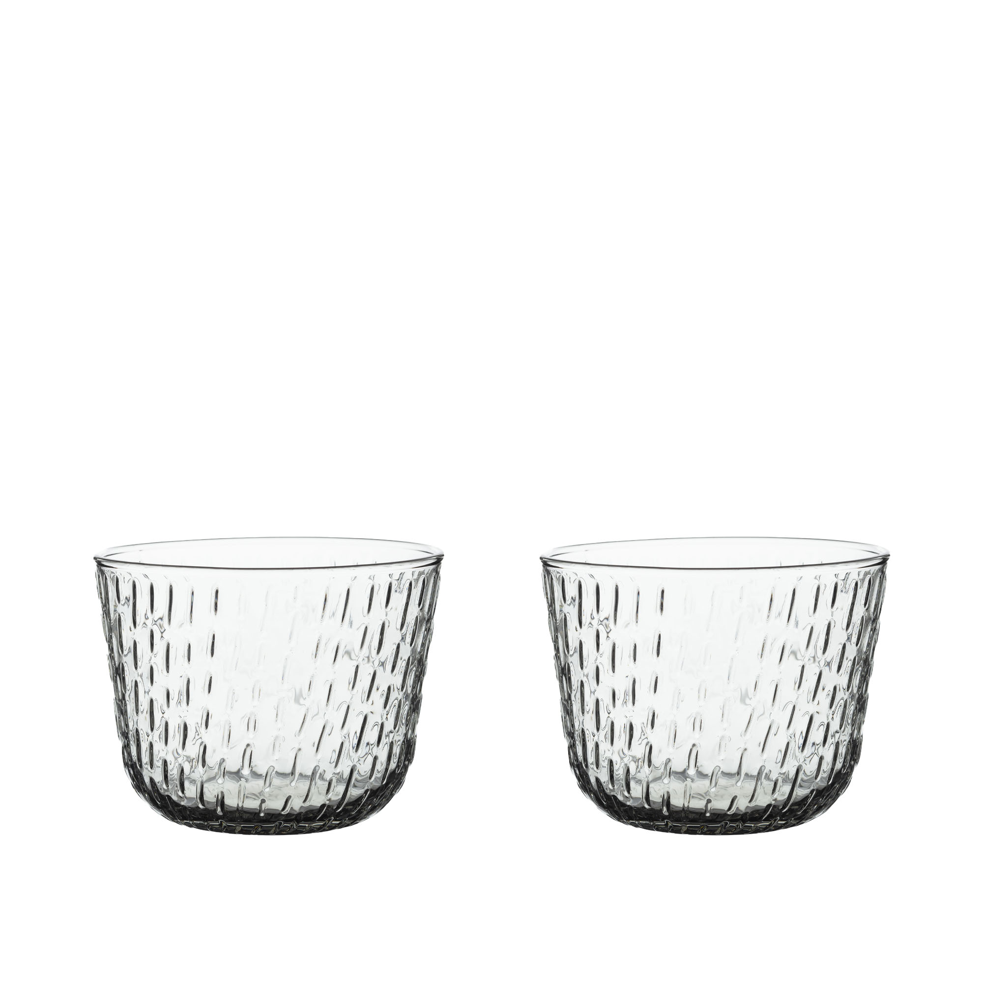 Syksy tumbler 20 cl 2-pack är ett set tillverkade av munblåst glas designad av Matti Klenell som fortsätter utforskningen av natur och väderfenomen som är känt från Marimekkos tryckkonst. Det övergripande temat för serien är former av höstregn, från lätt duggregn till kraftiga skyfall. En sofistikerad, nyanserad och påtaglig känsla av regn har fångats i glasprodukterna som en organisk, reliefliknande yta applicerad på ett skissartat sätt som är typiskt för designern. Eftersom Marimekkos glasföremål är handgjorda och munblåsta kan de innehålla tillfälliga luftbubblor och andra små tecken på hantverksskicklighet, och mindre variationer mellan produkterna är naturliga.