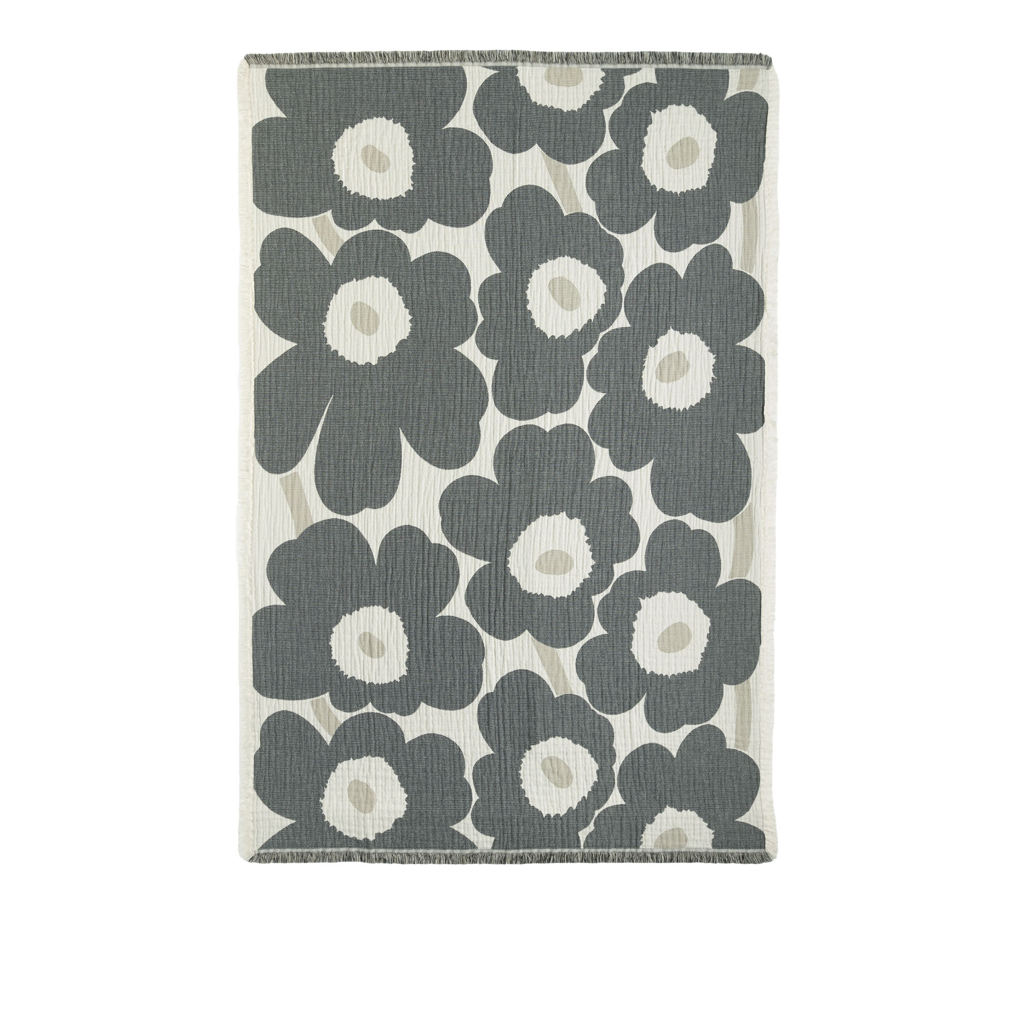 Marimekko - Unikko jacquard pläd 150x220 cm offwhite charcoal sand - Plädar och filtar - Marimekko - Grå