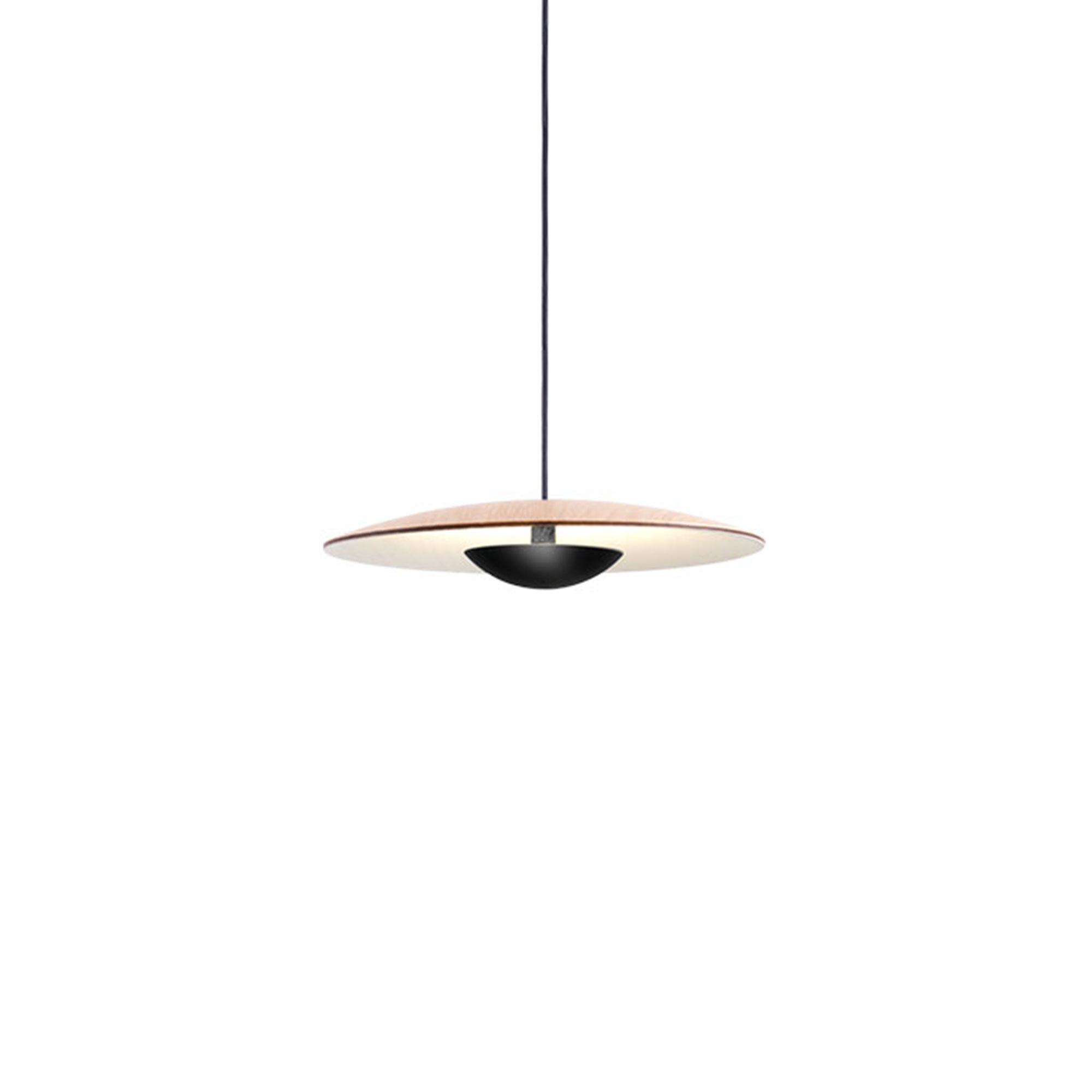 Designad av Joan Gaspar för Marset år 2015, Ginger – Pendant Lamp är en del av den omfattande belysningsserien Ginger. Denna pendellampa är känd för sin ultratunna skärm, endast 4 mm tjock, tillverkad av pressat ekträ. Lampen är upphängd från taket med ett takfäste i metall och aluminium, vars mattsvarta lack ger en modern touch. Ginger – Pendant Lamp ger en behaglig och bländfri belysning, som sprider ett varmt sken i rummet.