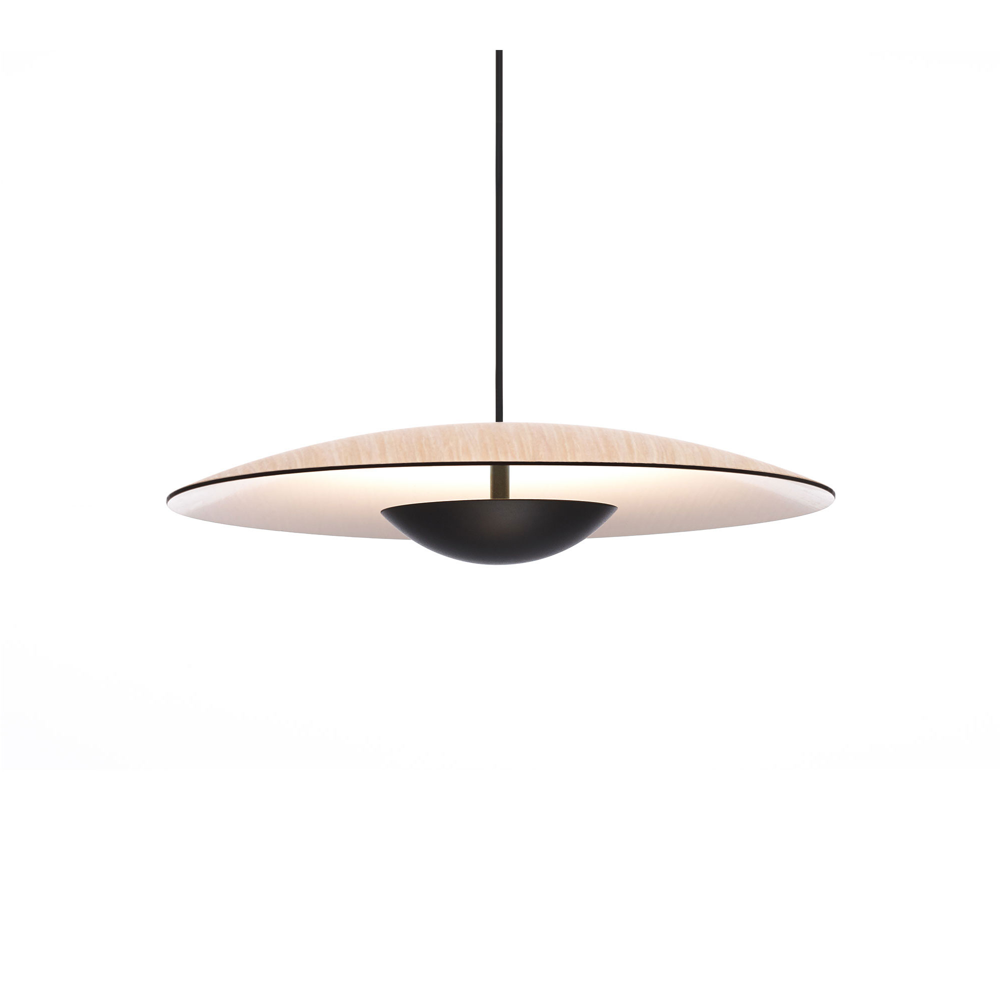 Designad av Joan Gaspar för Marset år 2015, Ginger – Pendant Lamp är en del av den omfattande belysningsserien Ginger. Denna pendellampa är känd för sin ultratunna skärm, endast 4 mm tjock, tillverkad av pressat ekträ. Lampen är upphängd från taket med ett takfäste i metall och aluminium, vars mattsvarta lack ger en modern touch. Ginger – Pendant Lamp ger en behaglig och bländfri belysning, som sprider ett varmt sken i rummet.