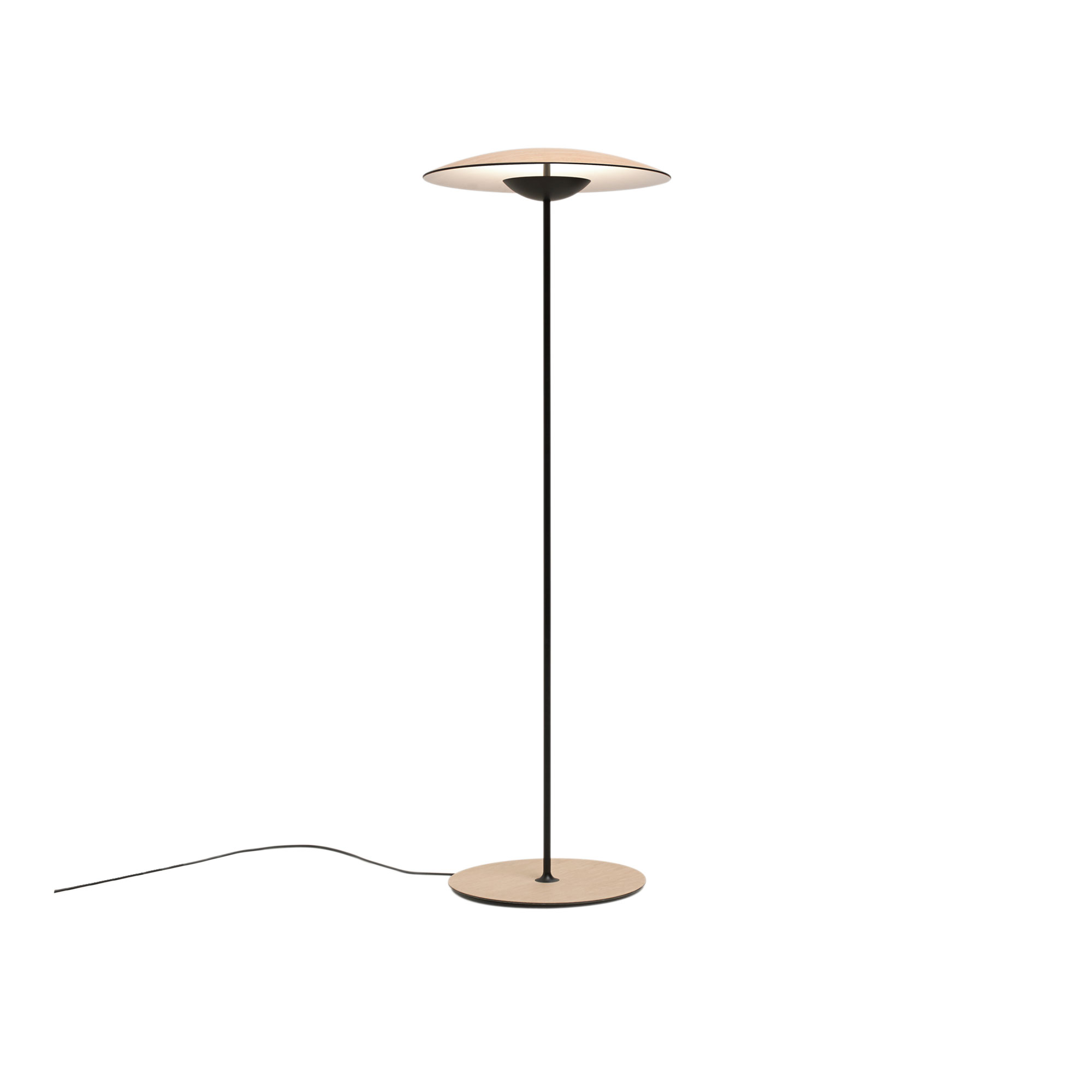 Ginger P – Floor Lamp är en stilfull golvlampa designad av Joan Gaspar för Marset år 2014. Tillverkad av mattsvart lackerat aluminium och med skärm och lampfot av trälamell. Lampan finns i två varianter: ek och wengé. Den träbaserade skärmen och lampfoten ger en varm och behaglig belysning utan att blända.