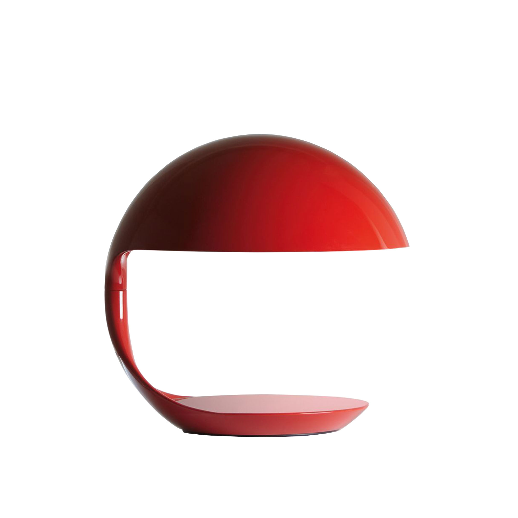 Bordslampan Cobra, skapad av Elio Martinelli för Martinelli Luce 1968, är en ikonisk designprodukt. Cobra var banbrytande då den var en av de första att tillverkas i gjuten harts, en process som vid tiden var toppmodern. Dess design är uppbyggd av två sfäriska sektioner, en skärm och en fot, som är snyggt ihopkopplade med en flexibel arm som tillåter rotation på hela 360 grader. En kabel och en av/på-knapp ingår. Den utmärker sig med sitt strama och minimalistiska designuttryck. Från början kom lampan i svart och vitt, men i samband med dess 50-årsjubileum 2018, introducerades en ny version i en klar röd nyans, signerad av Martinelli, som en hyllning till Cobras långa historia. Designens inspiration är hämtad från kobrans silhuett och dess förmåga att röra sig - först förföriskt svängande i takt med musiken, sedan plötsligt utsträckt i en attack.