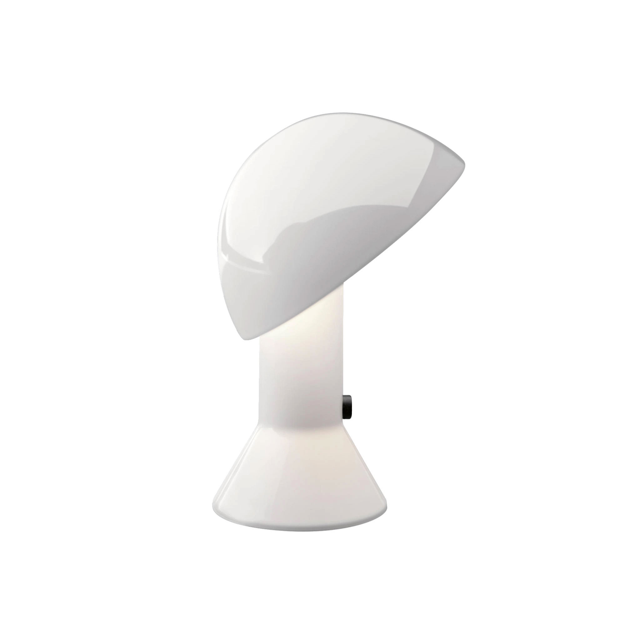 Designikonen Elmetto, skapad av Elio Martinelli år 1976 för företaget Martinelli Luce, är en bordslampa med en distinkt form som påminner om en hjälm, vilket namnet också antyder på italienska. Dess unika design med en justerbar skärm som vilar på en konisk bas gör den idealisk för användning i begränsade utrymmen såsom vid sängkanten, bredvid soffan eller på andra platser där behovet uppstår. Skärmens flexibilitet tillåter användaren att anpassa ljusstyrkan från direkt till mjukare belysning. Martinelli Luce tillhandahåller Elmetto i ett urval av färgalternativ. Tillverkad med en aluminiumskärm som har en vitlackerad insida, optimerar den ljusets spridning. Inbjud Elmetto att bli en del av din inredning och bidra med sin designarv, spelglädje och ett angenämt ljus i ditt boende.