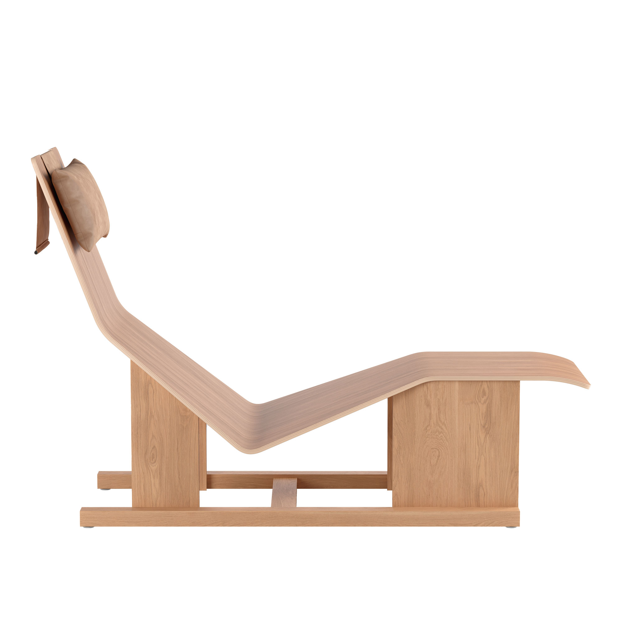 Chris Martin, en brittisk formgivare, har skapat schäslongen 4PM för företaget Massproductions. Denna möbel är framtagen med ambitionen att erbjuda optimal bekvämlighet trots användningen av solida material. Designen av 4PM kännetecknas av en harmonisk blandning av böjda och raka element, optimerade för att ge högsta tänkbara komfort. Ett justerbart nackstöd i läder, som vilar stilfullt över ryggstödet och hålls på plats av en metalltyngd, tillför en extra dimension av lyx. Vi erbjuder schäslongen 4PM i två olika materialval, där kunderna kan välja mellan utföranden i douglasgran eller i ädelträ från körsbärsträd.