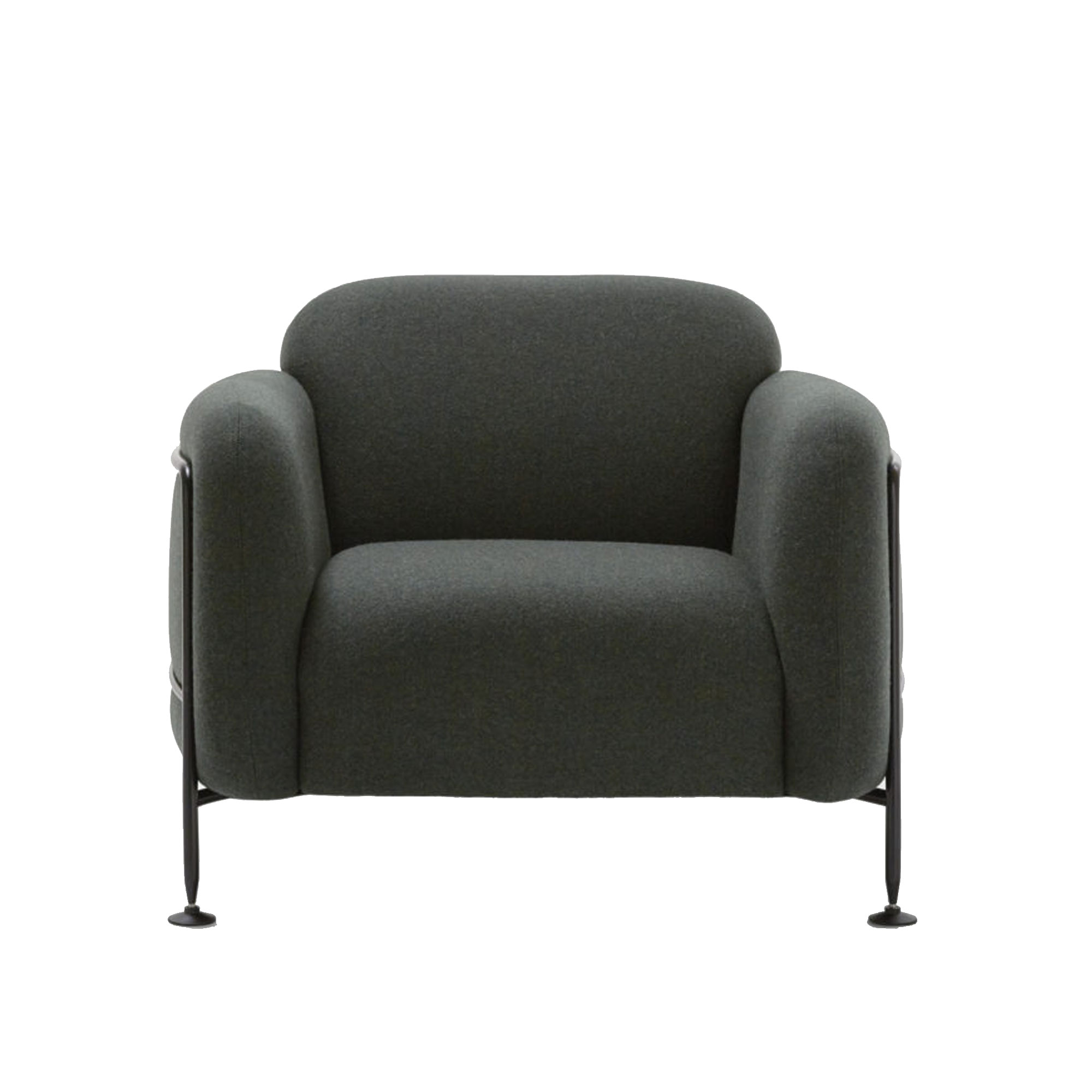 Mega Armchair, en samtida fåtölj skapad av designern Chris Martin för företaget Massproductions, utmärker sig med sina mjuka och volymrika dynor som erbjuder utmärkt sittkomfort. Dess struktur består av slanka stålrör som bildar basen och sidostöden, vilka sammanfogar dynornas stoppning. Dessa rör är behandlade med pulverlack och kan väljas i färgalternativen svart, vitt och stengrå. Med ett brett urval av klädselalternativ, bidrar Mega Armchair med sin skulpturliknande design till en estetisk förhöjning i olika utrymmen, inklusive kontor, hotell och privata bostäder. Den här fåtöljen är en del av möbelkollektionen Mega, som hämtat sin designinspiration från ett bageri. Chris Martin inspirerades av synen av nybakade bröd på en metallplåt, vilket påverkade formgivningen av kollektionen. Förutom fåtöljen omfattar Mega-serien även en 3-sitssoffa, en 2-sitssoffa, en dagbädd och en sittpuff.