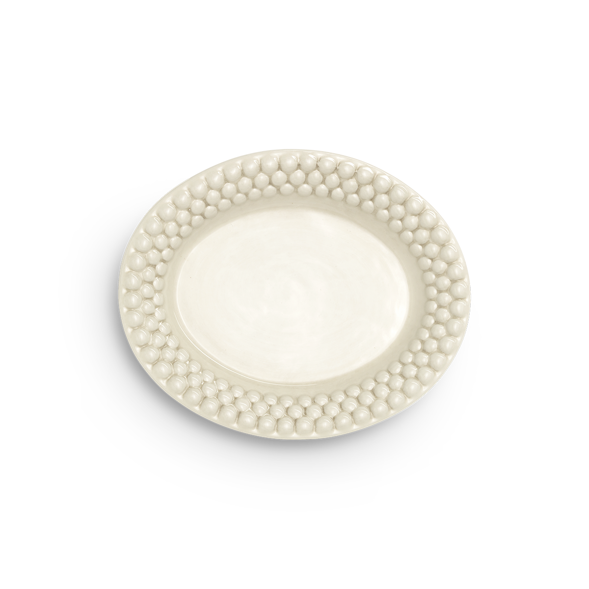 Den ovala tallriken från Mateus kollektion Bubbles är tillverkad av keramik och framställd av erfarna keramiker i Portugal genom handarbete och handmålning, vilket gör att varje exemplar är unikt. Denna tallrik, med sin karakteristiska design med bubbelmönster, passar utmärkt som både mattallrik och som uppläggningsfat. Kombinera med andra färger från Bubbles-kollektionen för ett ännu mer lekfullt intryck eller håll det mer stilrent med färger i samma skala.