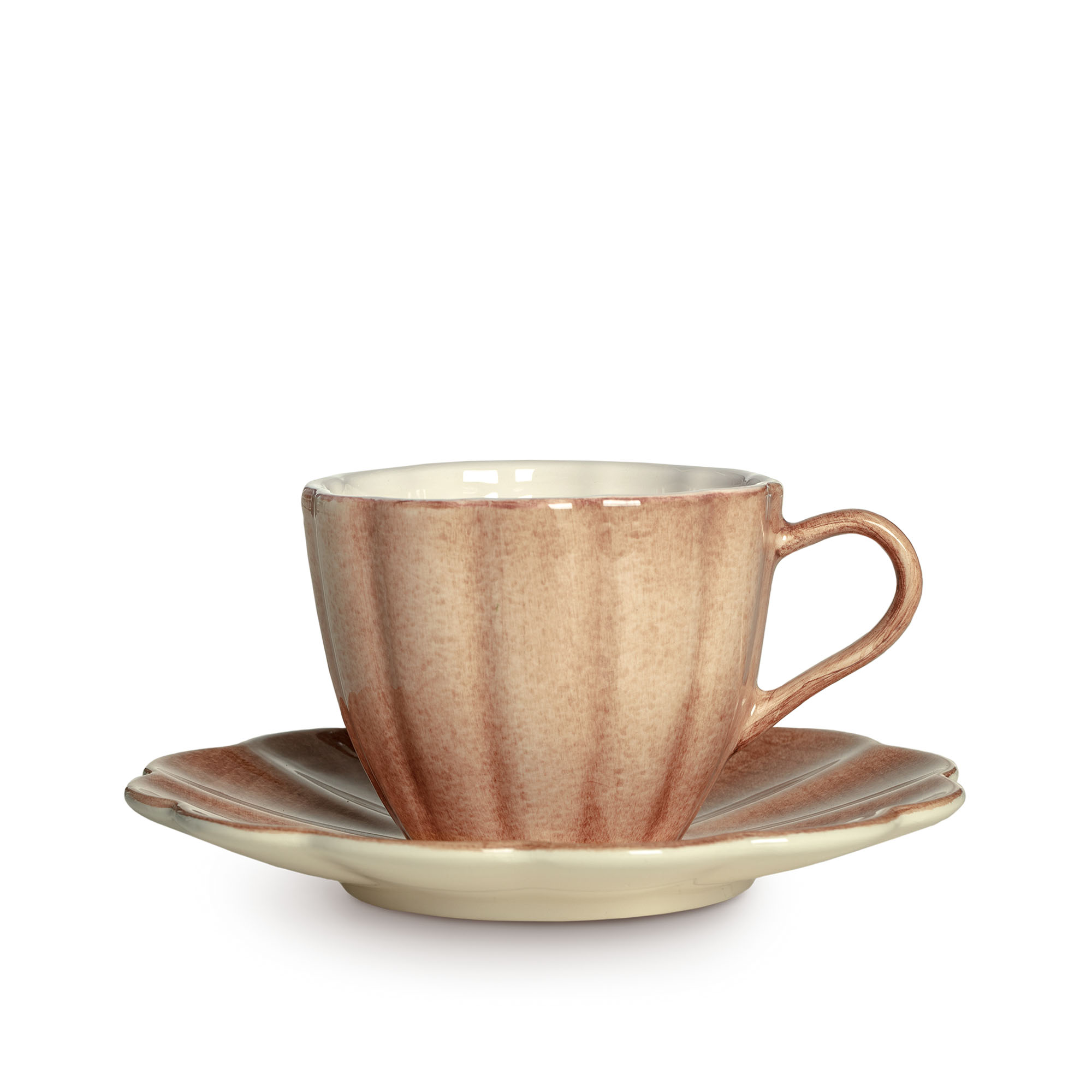 Oyster kopp med fat från varumärket Mateus i handmålad keramik. Formerna av havet samt ostron, snäckor och musslor har inspirerat vågformen i Mateus Oyster-kollektion. Designen med sitt mjuka formspråk uppfattas som lekfull men ändå sofistikerad. Koppen kommer med tillhörande assiett som lämpar sig till fika eller smörgåsar. Assietten kan även användas som förvaring till smycken och småsaker. Koppen rymmer 25cl.