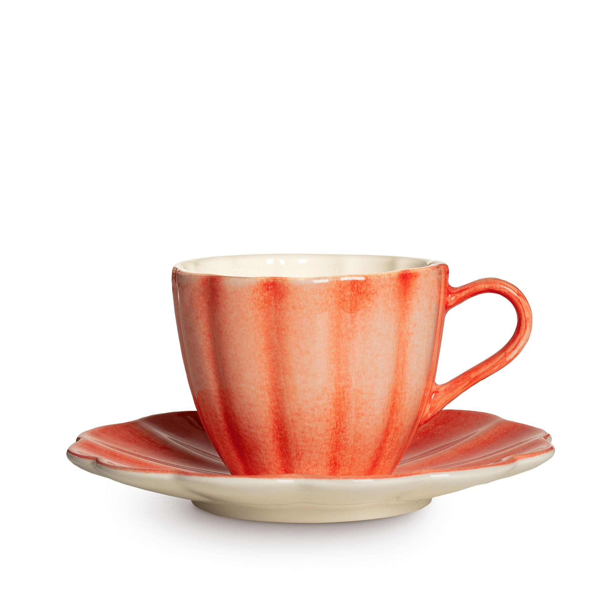 Oyster kopp med fat från varumärket Mateus i handmålad keramik. Formerna av havet samt ostron, snäckor och musslor har inspirerat vågformen i Mateus Oyster-kollektion. Designen med sitt mjuka formspråk uppfattas som lekfull men ändå sofistikerad. Koppen kommer med tillhörande assiett som lämpar sig till fika eller smörgåsar. Assietten kan även användas som förvaring till smycken och småsaker. Koppen rymmer 25cl.