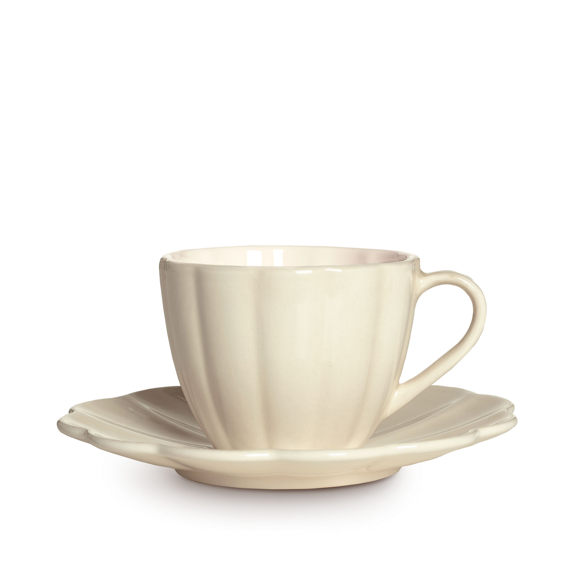 Oyster kopp med fat från varumärket Mateus i handmålad keramik. Formerna av havet samt ostron, snäckor och musslor har inspirerat vågformen i Mateus Oyster-kollektion. Designen med sitt mjuka formspråk uppfattas som lekfull men ändå sofistikerad. Koppen kommer med tillhörande assiett som lämpar sig till fika eller smörgåsar. Assietten kan även användas som förvaring till smycken och småsaker. Koppen rymmer 25cl.