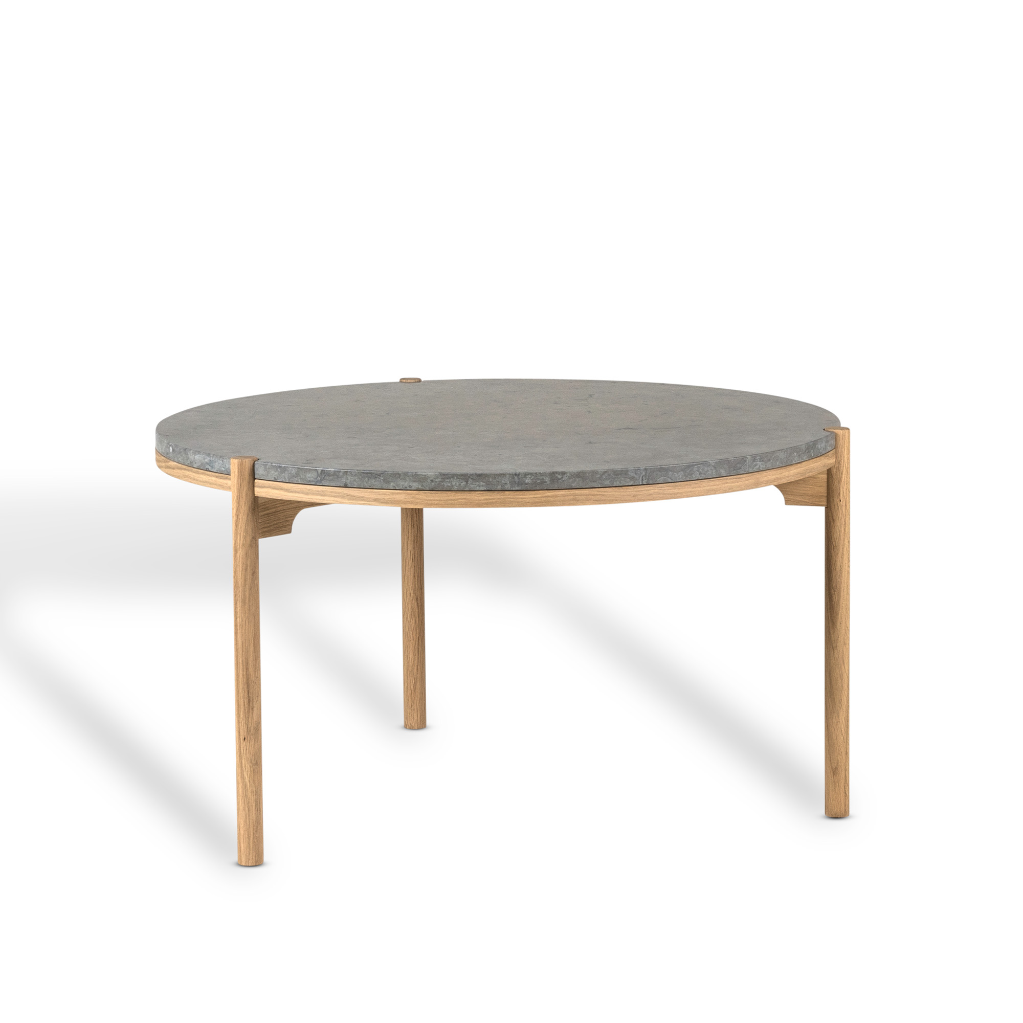 Dondo Soffbord, designat av Martina Elgemark för varumärket Mavis, erbjuder både slipad och hyvlad kalkstenstopp från Hällekis, med ett underrede i vitpigmenterad mattlackerad ek.