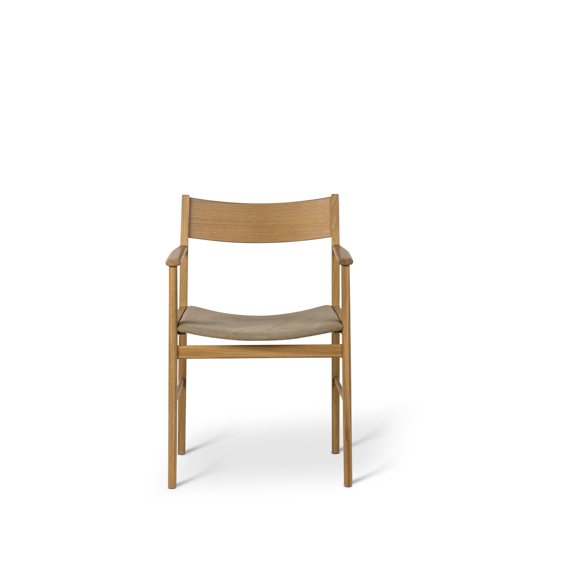 Siza Karmstol, designad av Pierre Sindre för varumärket Mavis, finns i både vitpigmenterad mattlackerad ek och svart oljad ask. Stolen har eleganta, avsmalnande ben och armstöd som ger den ett graciöst utseende. Sitsens tunna och flytande form är inspirerad av designen på det hängande taket mellan de två huvudbyggnaderna på paviljongen. Den stilrena Siza Karmstol i massiv lackad ljus ek har en linneklädd sits, medan Siza Karmstol i svart oljad ask är klädd i svart matt skinn. För att hålla stolen ren, torka den med en lätt fuktad trasa. Siza Karmstol passar perfekt runt köksbordet, matsalsbordet, som skrivbordsstol eller som en solitär i ett rum för att komplettera din omgivning.