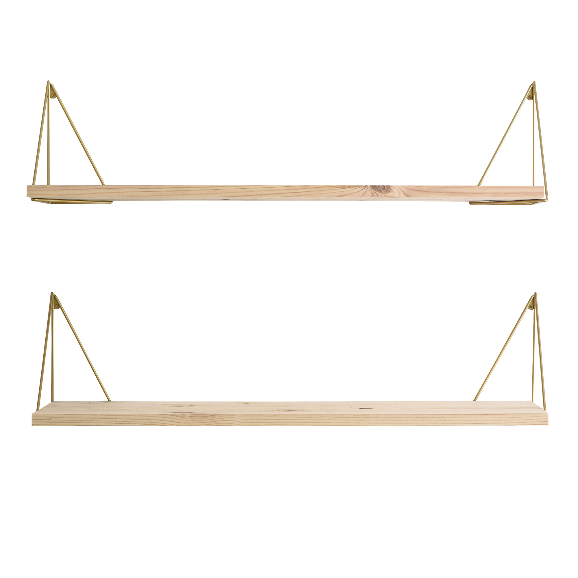 Maze Interior - Pythagoras Play pine/brass, 4 brackets + 2 shelves - Hyllor & Hyllsystem - Gustav Rosén - Guld,Träfärgad - Metall/Trä