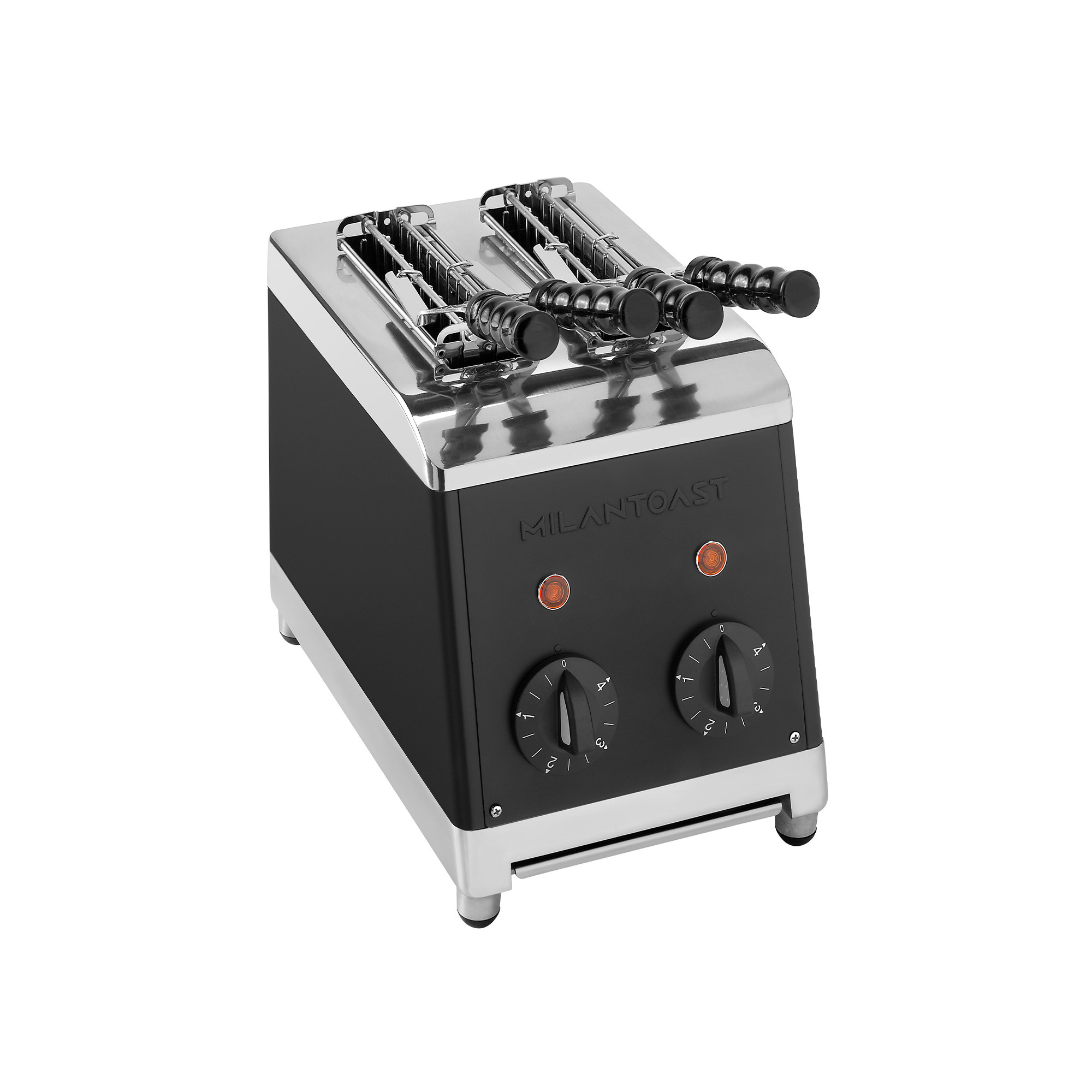 Milantoast Classic Sandwich Toaster i svart är en elegant produkt från det anrika italienska företaget. Denna brödrost är utformad med en tidlös italiensk estetik och är idealisk för att snabbt skapa knapriga smörgåsar eller toast med fyllning. Den är konstruerad av hållbart rostfritt stål och har en sofistikerad svart yta, med blanka topp- och bottenytor samt inkluderar två stänger av rostfritt stål för smörgåspressning. Varje enskild sektion fungerar självständigt och är utrustad med en inbyggd timer och en signalindikator för enkel användning. Den robusta designen säkerställer en lång livslängd och är avsedd för professionellt bruk. De två separata toastugnarna har kraftfulla värmeelement som kan regleras individuellt. En funktion för självrengöring och en timer på fyra minuter är också inkluderade. Med sin unika design är Classic Sandwich Toaster ett utmärkt val för både hemmabruk och för användning i barer, caféer och restauranger. Dess speciella byggnad tillåter luften att flöda effektivt, vilket gör det möjligt att rosta upp till 240 brödskivor i timmen utan risk för överhettning eller driftstopp. Denna traditionella brödrost är utrustad med en soft-touch-knapp och en smulbricka som är avtagbar och tillverkad av rostfritt stål. Smulbrickan kan enkelt rengöras i diskmaskin, vilket underlättar underhållet. Den är tillgänglig i en rad tilltalande färger.