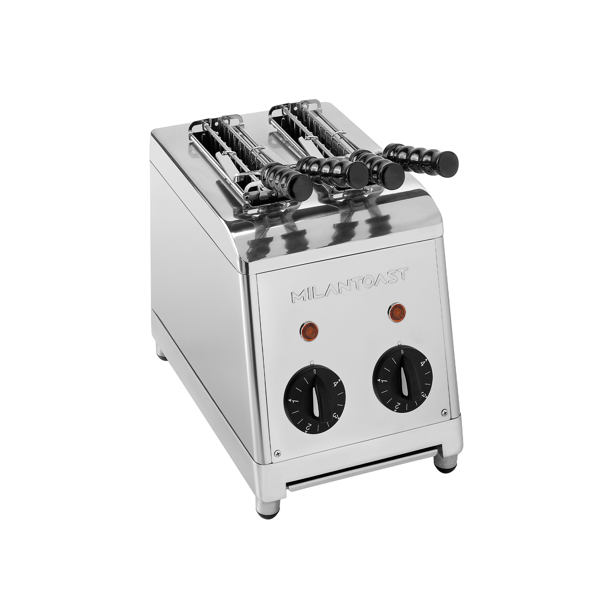 Traditionell Smörgåsgrill – Inox av det anrika italienska märket Milantoast. Denna brödgrill är designad med en tidlös italiensk estetik och är idealisk för att snabbt skapa knapriga smörgåsar eller toast med fyllning. Konstruerad i rostfritt stål, har den en blank finish på både toppen och botten samt inkluderar två stänger av rostfritt stål för smörgåspressning. Varje grillsektion fungerar självständigt och är utrustad med en inbyggd timer och en signalindikator för enkel användning. Den robusta byggnaden säkerställer en lång livslängd och är avsedd för professionellt bruk. De två separata grillkamrarna har kraftfulla värmeelement och möjlighet till individuell temperaturkontroll. Grillen är även försedd med ett automatiskt rengöringssystem och en timer som kan ställas in på upp till 4 minuter. Classic Sandwich Toaster är ett utmärkt alternativ för både hemmabruk och för användning i barer, caféer och restauranger. Dess unika design bidrar till en effektiv luftcirkulation, vilket tillåter dig att grilla upp till 240 brödskivor i timmen utan risk för överhettning eller driftstopp. Denna klassiska smörgåsgrill kommer med en knapp med mjuk beröring och en smulbricka som är enkel att ta bort och tillverkad i rostfritt stål. Smulbrickan tål maskindisk, vilket gör rengöringen och underhållet bekymmersfritt. Grillen erbjuds i en rad tilltalande färger.