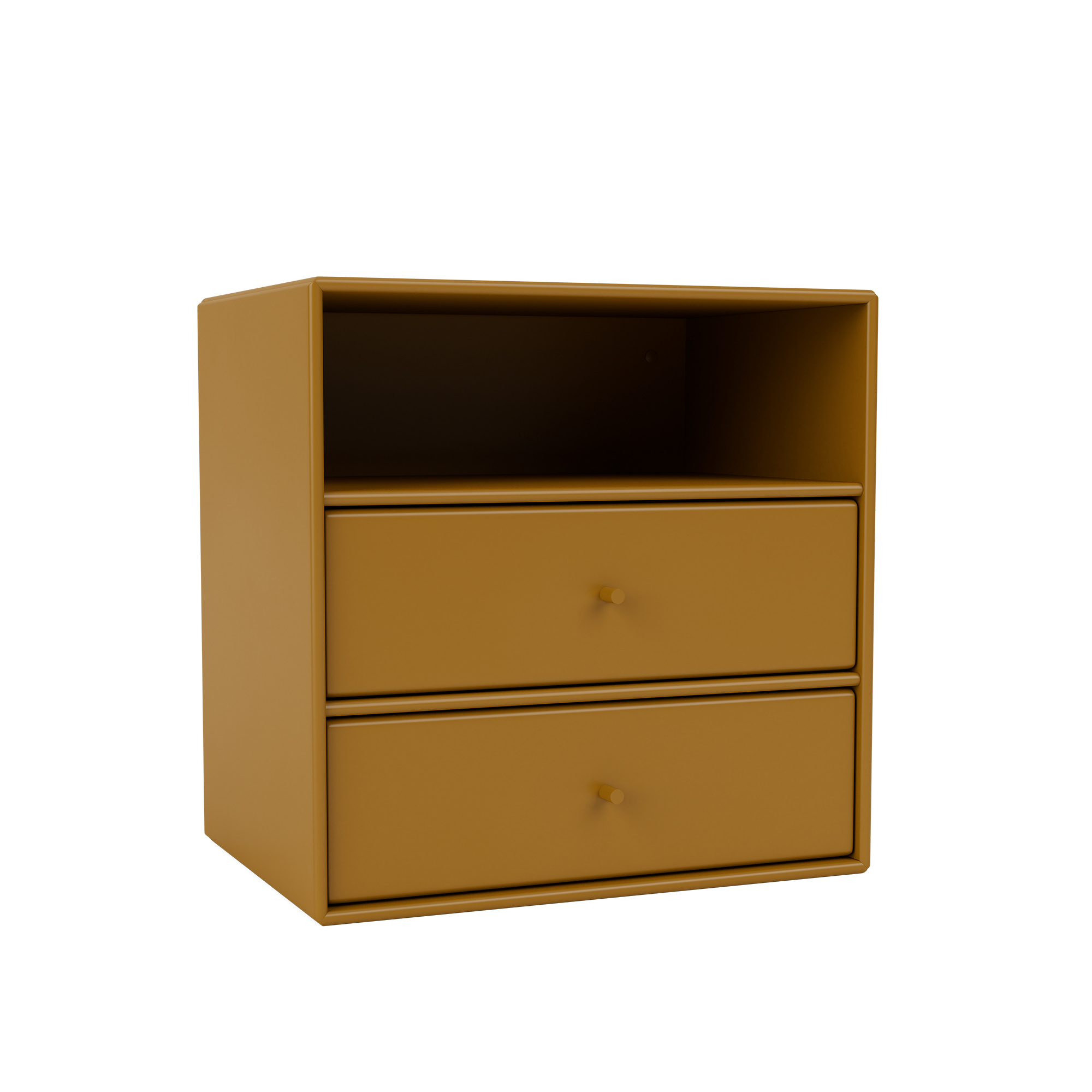 Modulen Montana Mini 1006 med två utdragbara lådor är designad av Peter J. Lassen för det danska märket Montana. Denna förvaringsenhet är tillverkad av MDF-material och inkluderar två lådor som enkelt kan flyttas mellan de tre sektionerna eller tas bort helt om så önskas. Modellen Montana Mini 1006 finns tillgänglig i ett urval av 10 olika nyanser, utvecklade i nära samarbete med färgspecialisten Margrethe Odgaard. En väggmonteringsskena och löstagbara ben medföljer, vilket ger flexibiliteten att antingen hänga upp modulen på väggen eller ställa den på golvet. Den maximala viktkapaciteten är 10 kg. Montana Mini-serien erbjuder ett sortiment av flexibla moduler som inkluderar dörrar, hyllplan och lådor, vilket möjliggör skräddarsydda förvaringslösningar för dina specifika behov. Tillgängliga är även extra toppskivor som du kan välja i enkel eller dubbel storlek. Med sin 8 mm profil är Montana Mini serien uppfattad som mer slimmad jämfört med det traditionella Montana-systemet som är 12 mm tjockt.
