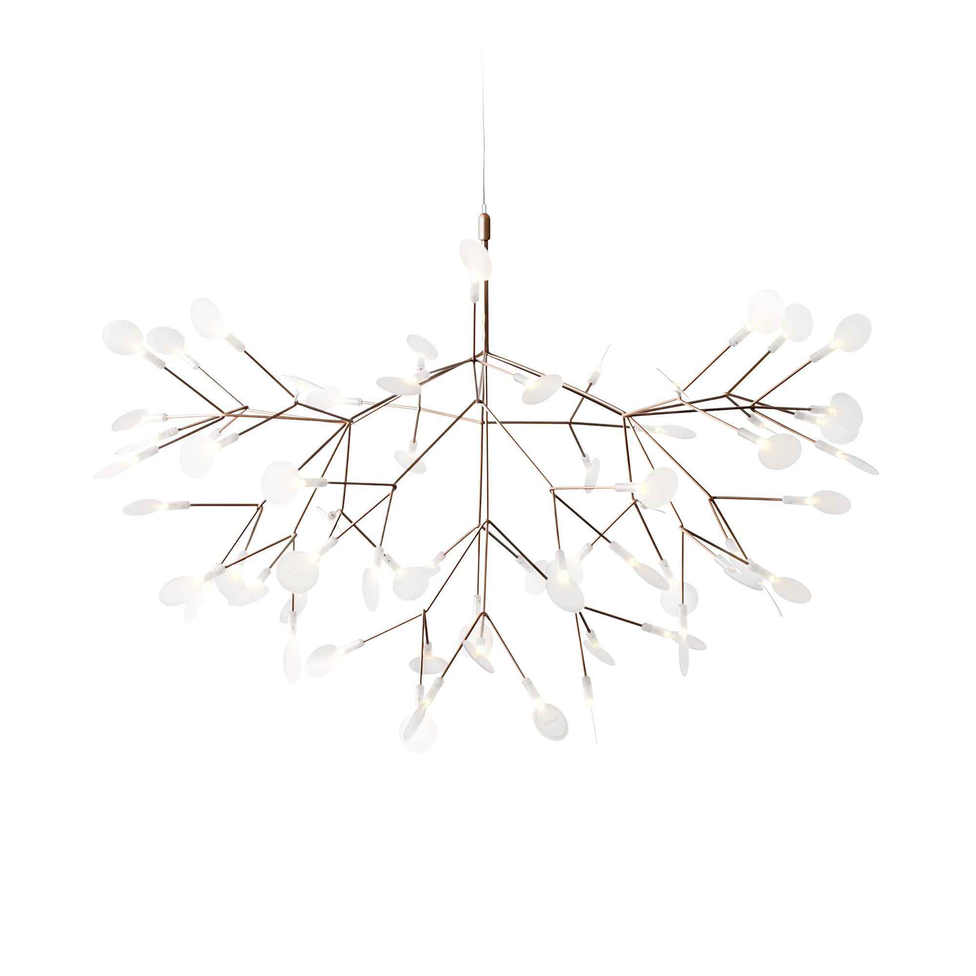 Heracleum III Suspended Large är en taklampa från varumärket Moooi, formgiven av Bertjan Pot. Heracleum III Suspended är inspirerad av växten Heracleum och har löv liknande lampor tillverkad av små semi-transparanta linser i polykarbonat som förgrenar sig mellan metallgrenar. Taklampan fångar rummet och skapar en harmonisk atmosfär tack vare tekniken vid namnet electrosandwich av Marcel Wanders Studio, som ger lampan en naturlig struktur. En elegant lampa med ett luftigt intryck som passar in i flera olika rum i hemmet. Finns i flera olika utföranden.