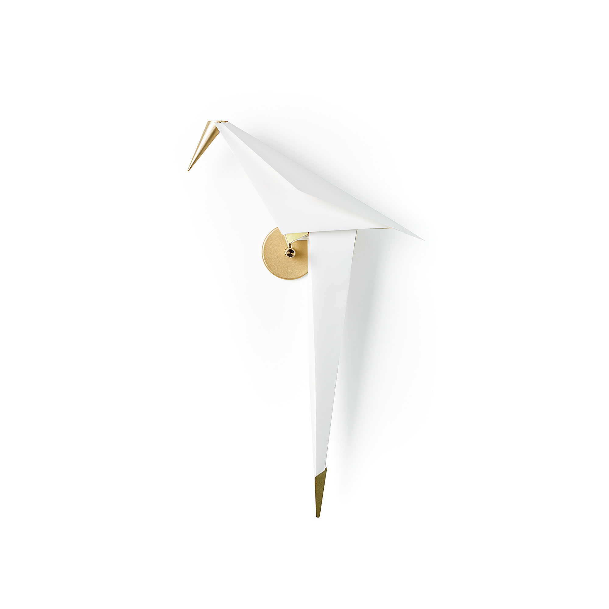 Perch Light vägglampan är en dekorativ vägglampa som designades av den Londonbaserade inredningsdesignern Umut Yamac 2016. Vägglampa har en vit pappersveckad fågel monterad på en metallgren med en aluminiumfinish och en mässingsaccent. Lampan avger en varm, atmosfärisk belysning, vilket gör den till ett idealiskt tillägg till ett rum med harmonisk belysning. I samma serie från Moooi finns även ett bord -, golv -, och vägglampa.