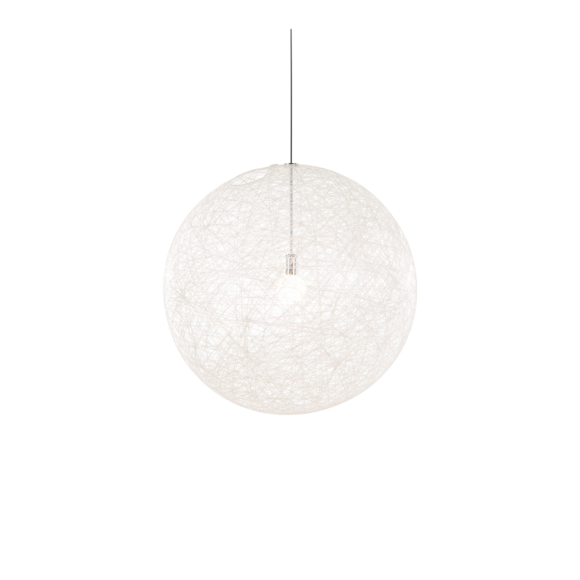 Random Light, pendel designad av Bertjan Pot för Moooi. Random Light ger en känsla av enkelhet, mjukhet, lätthet och en touch av magi i modern stil. Tillverkningsprocessen är en speciell historia i sig. Ett garn av glasfiber behandlas med harts och lindas sedan runt en uppblåsbar badboll, vilket skapar ett genomskinligt 3D-tyg. Badbollen töms sedan på luft och dras ut genom den runda öppningen vid lampans topp, och skalet som blir kvar blir själva produkten. Utan att ge ett tungt intryck fyller Random Light upp vilket rum den än placeras i.