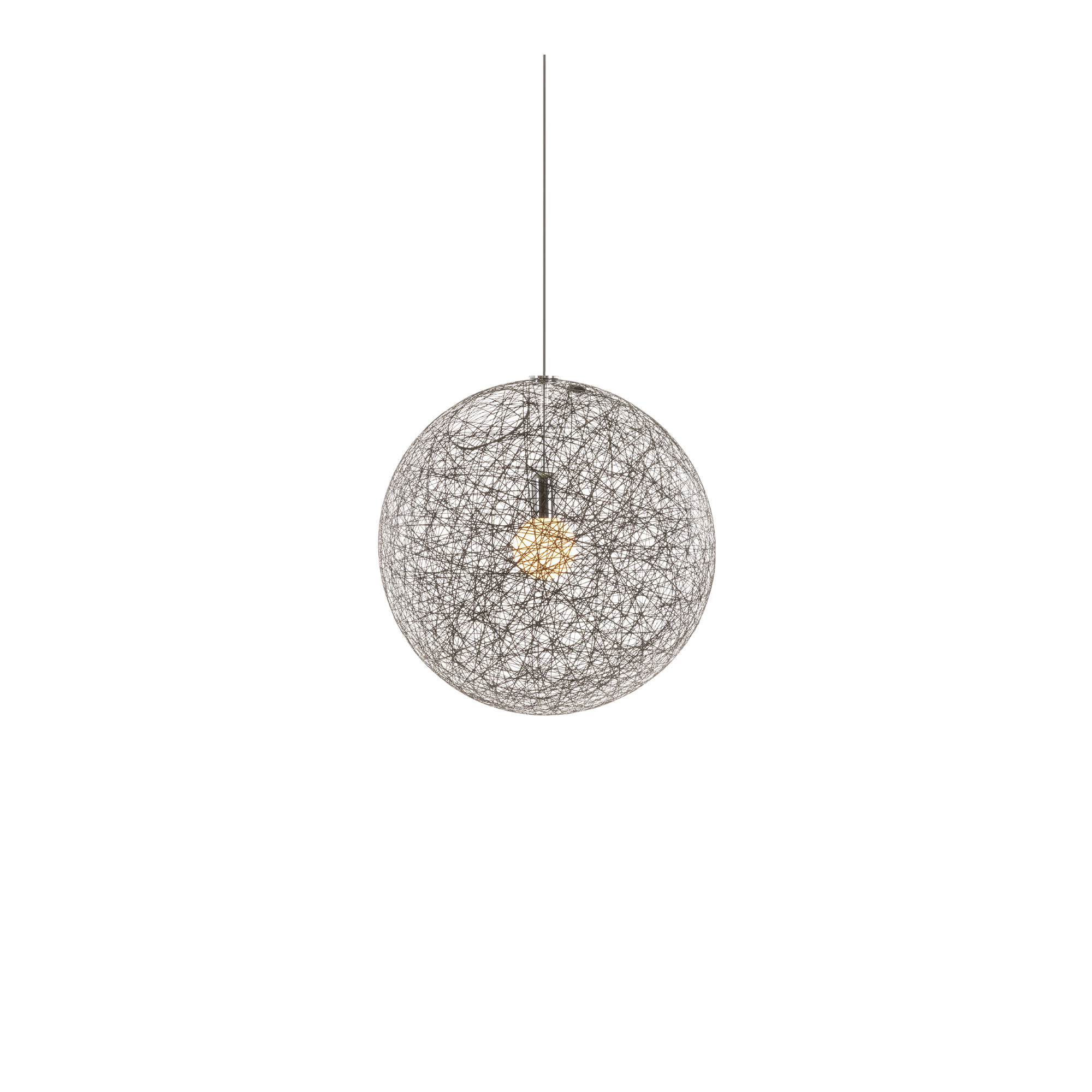 Random Light, pendel designad av Bertjan Pot för Moooi. Random Light ger en känsla av enkelhet, mjukhet, lätthet och en touch av magi i modern stil. Tillverkningsprocessen är en speciell historia i sig. Ett garn av glasfiber behandlas med harts och lindas sedan runt en uppblåsbar badboll, vilket skapar ett genomskinligt 3D-tyg. Badbollen töms sedan på luft och dras ut genom den runda öppningen vid lampans topp, och skalet som blir kvar blir själva produkten. Utan att ge ett tungt intryck fyller Random Light upp vilket rum den än placeras i.