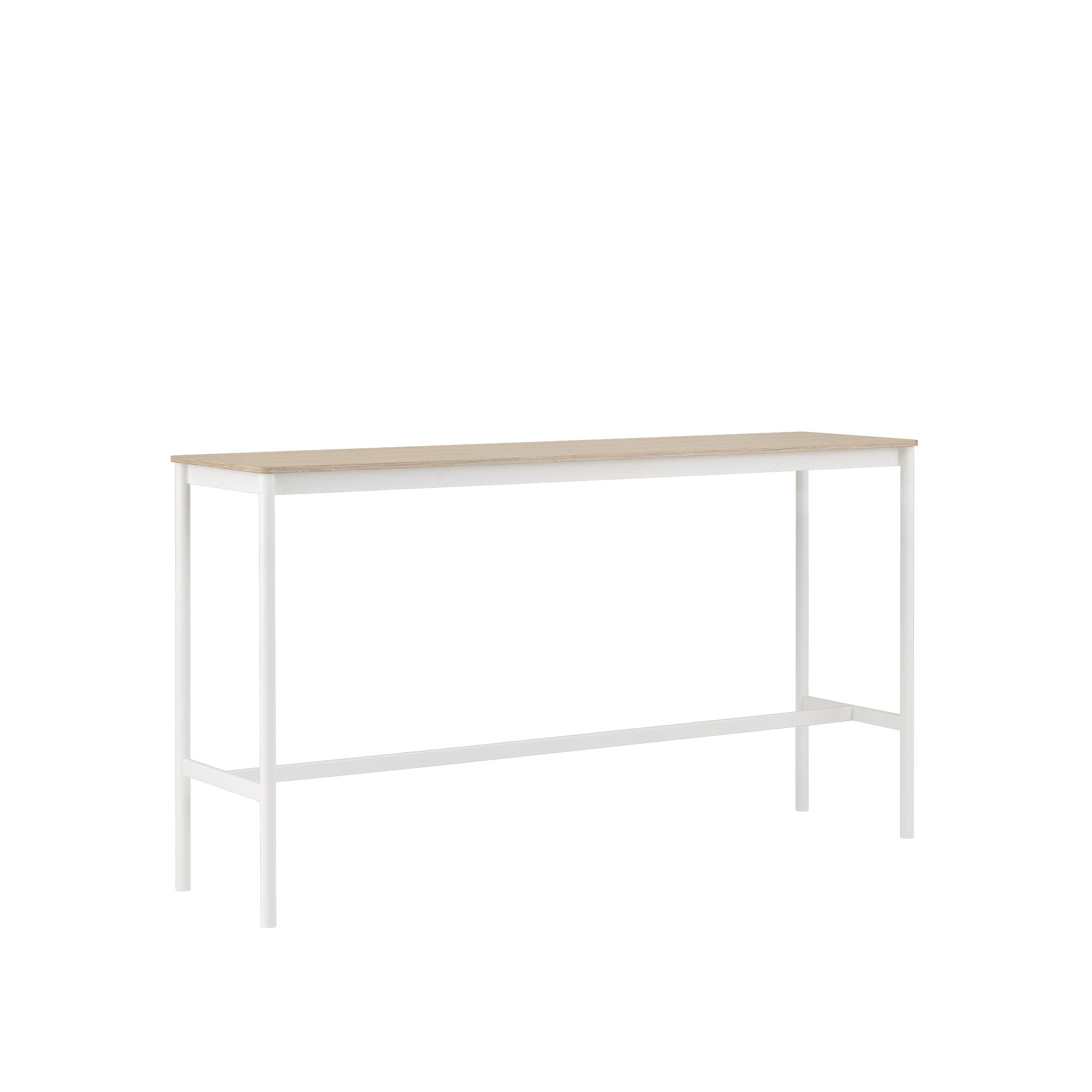 Muuto - Base High Table - 190 x 50 cm, Skiva - Ekfanér - Plywoodkant, Underrede - Vit, Höjd - 105 cm - Barbord - Mika Tolvanen - Vit - Metall/Trä