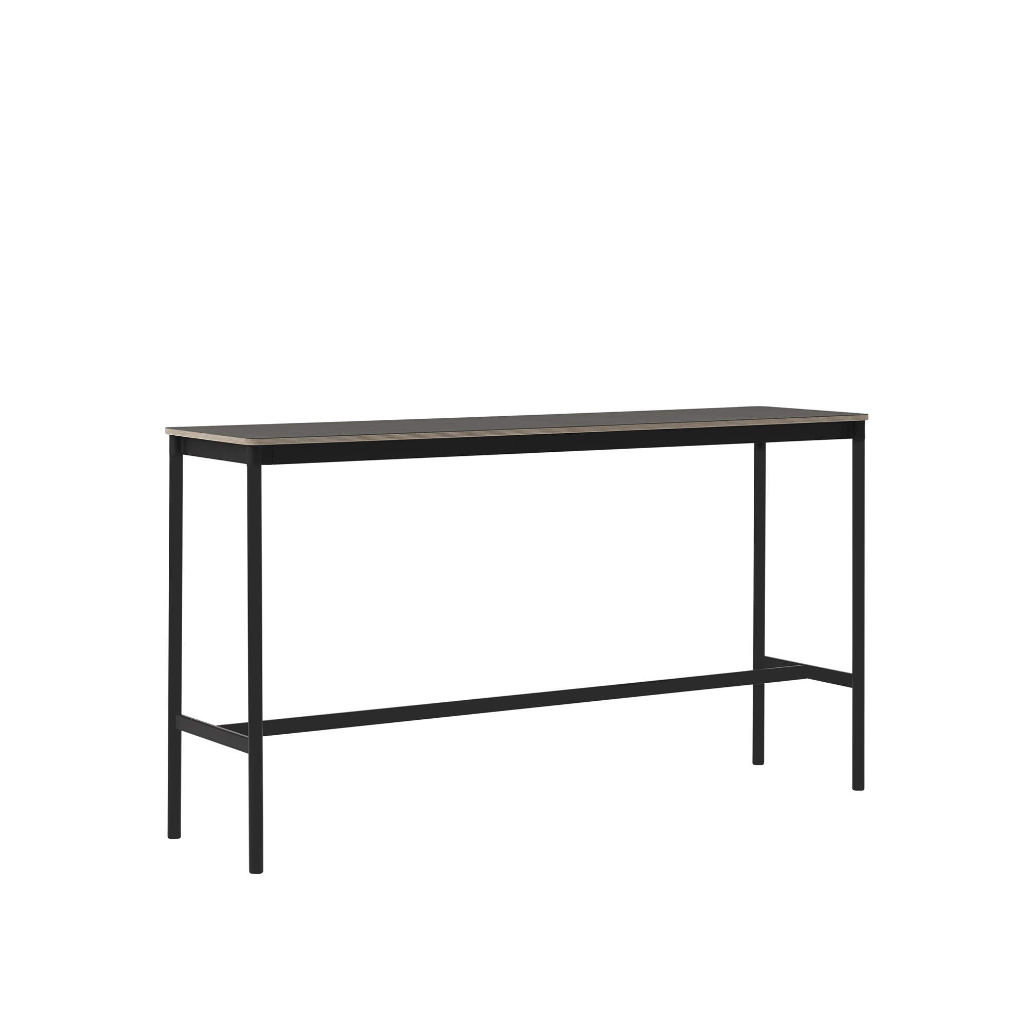 Muuto - Base High Table - 190 x 50 cm, Skiva - Svart linoleum - Plywoodkant, Underrede - Svart, Höjd - 105 cm - Barbord - Mika Tolvanen - Svart - Metall/Trä