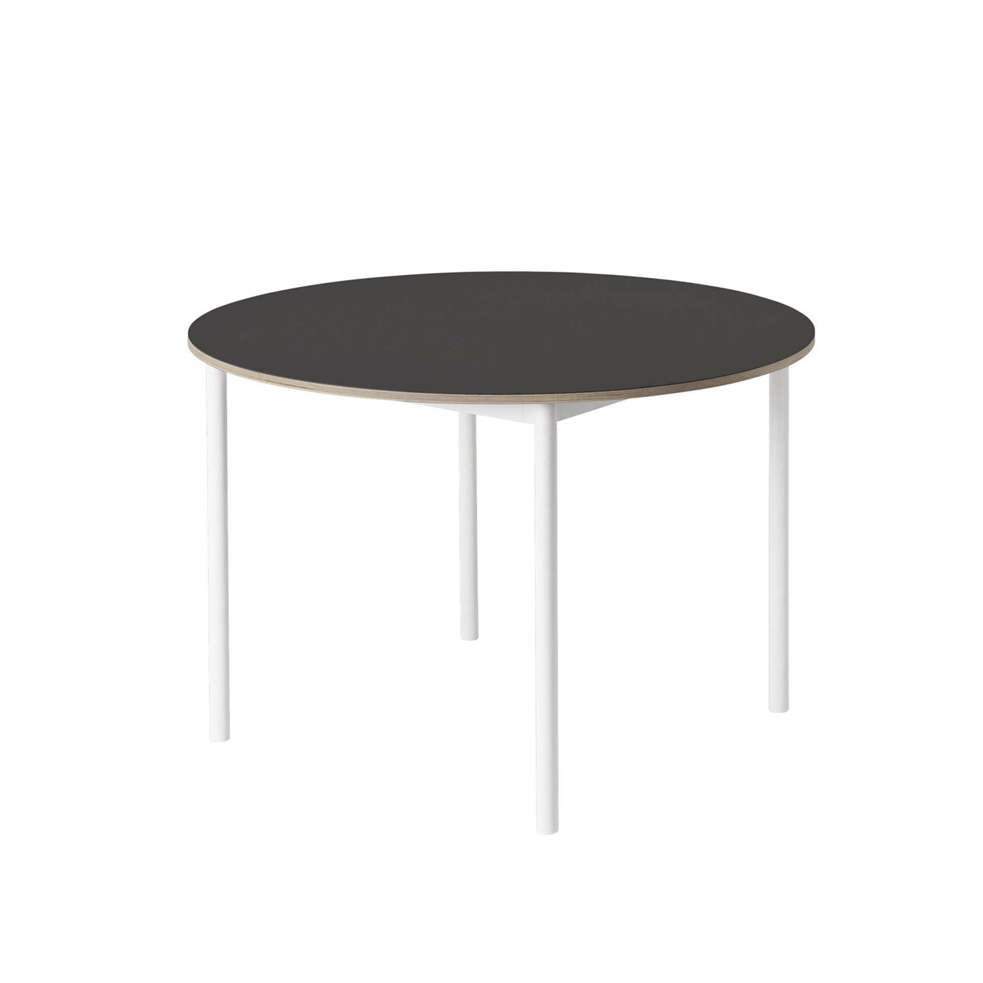 Muuto - Base Table, Ø110 cm, Top: Black Linoleum, Plywood edges, Frame: White - Matbord - Mika Tolvanen