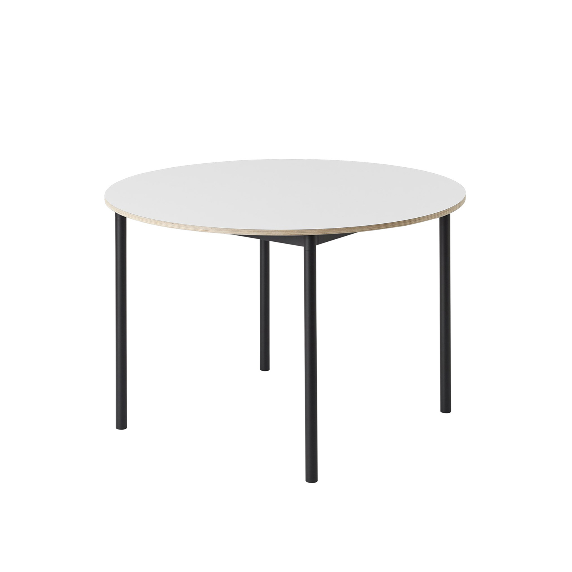 Muuto - Base Table, Ø110 cm, Top: White Laminat, Plywood Edged, Frame Black - Matbord - Mika Tolvanen
