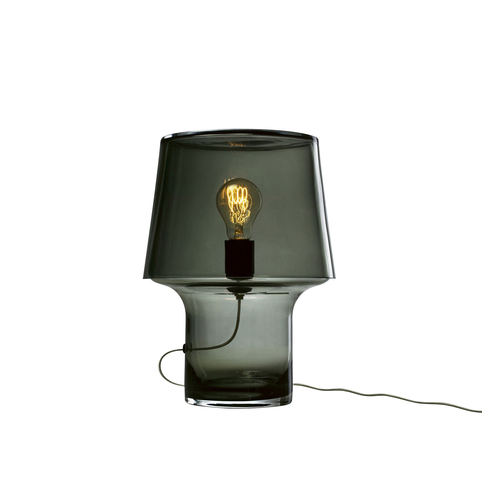Bordslampan Cosy In Grey Table Lamp designades år 2006 av Harri Koskinen för danska Muuto. Visionen var att skapa en lampa som ger en inbjudande atmosfär. Den är tillverkad i ett färgat borosilikatglas som är munblåst och har skurits, slipats och polerats för hand. Bordslampan har en integrerad dimmer som gör att man kan justera ljusstyrkan. Den kommer med en 260 cm lång kabel och utan ljuskälla. Bordslampan är designad i färgen Grey.