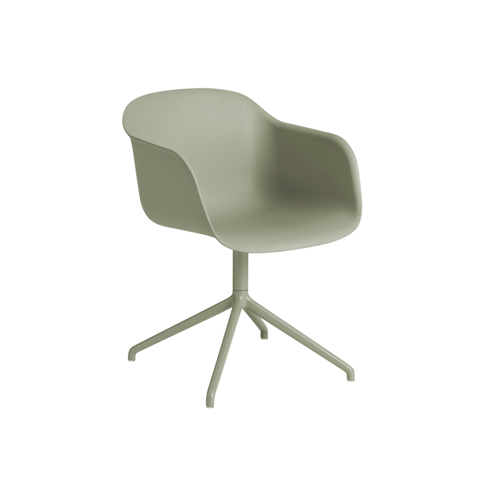 Muuto - Fiber Armchair Swivel Base W Return - Dusty Green/Dusty Green (Recycled Plastic) - Kontorsstolar - Iskos-Berlin - Metall/Trä/Plast