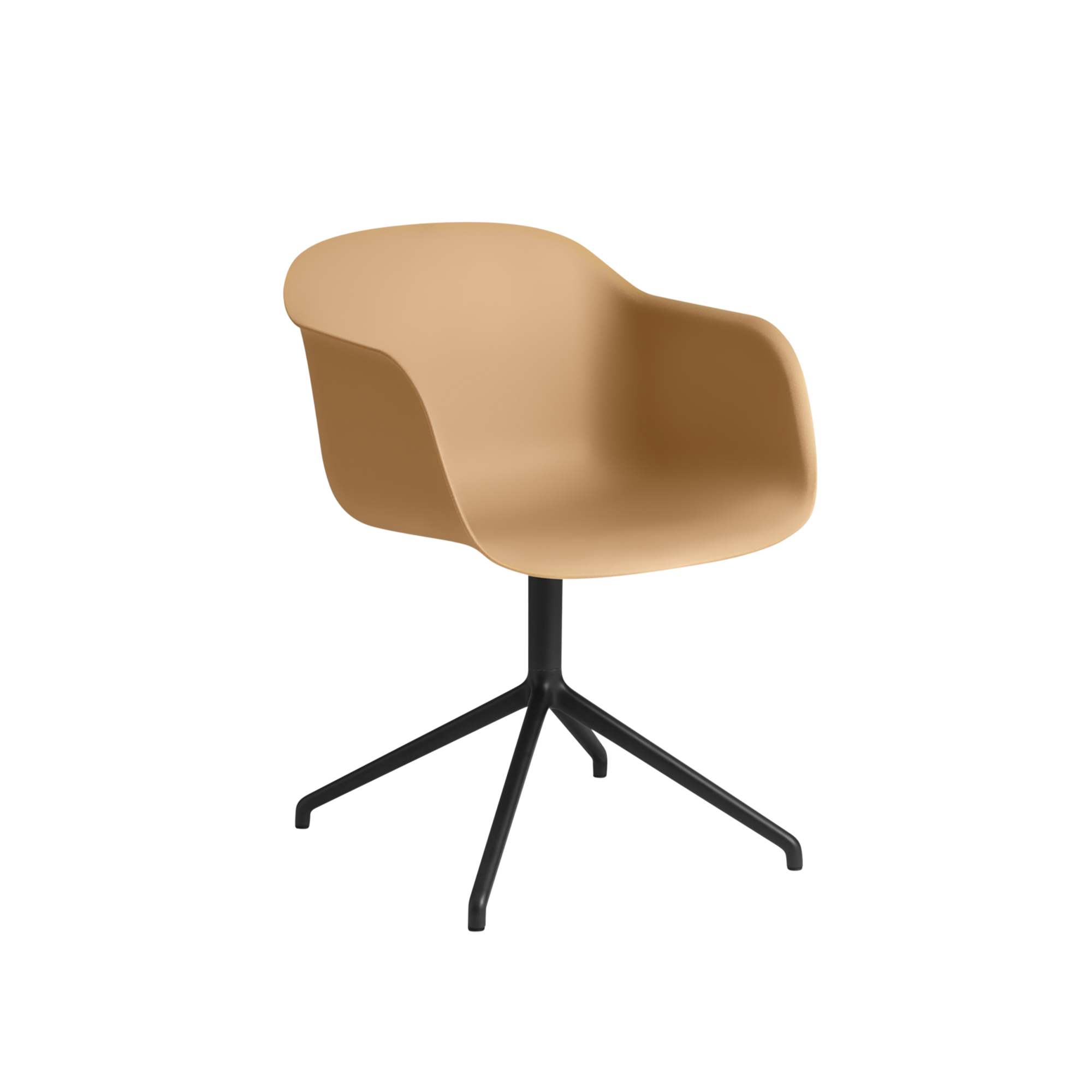 Muuto - Fiber Armchair Swivel Base W Return - Ochre/Black - Kontorsstolar - Iskos-Berlin - Läder/Metall/Trä