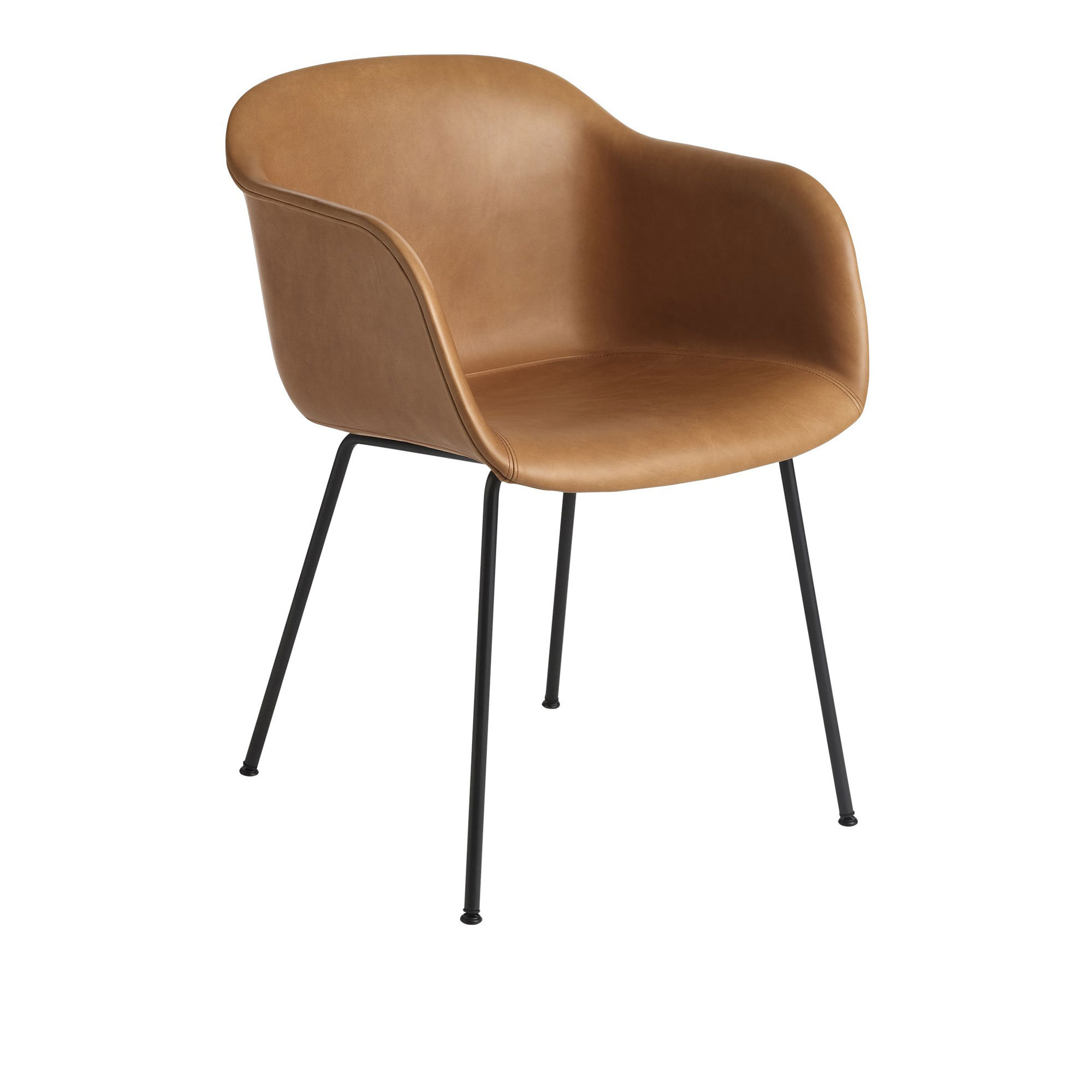 Muuto - Fiber Armchair, Tube Base, Silk Leather - Cognac/Black - Matstolar - Iskos-Berlin - Brun - Metall/Trä/Syntetiskt