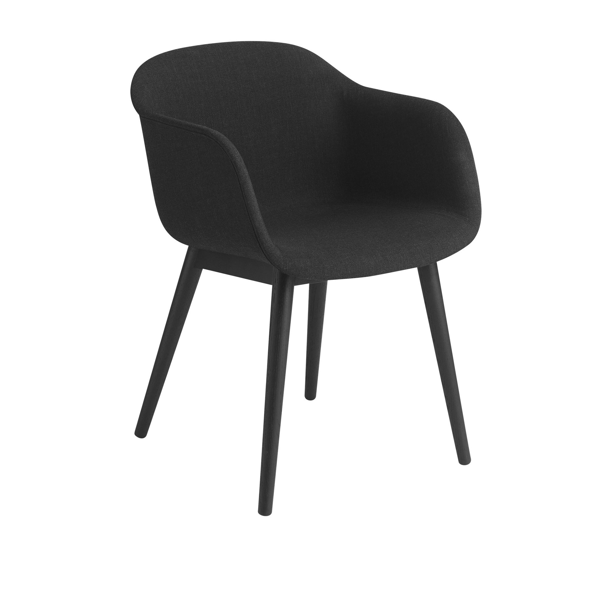 Muuto - Fiber Armchair, Wood Base, Remix 183/Black - Matstolar - Iskos-Berlin - Svart - Trä/Syntetiskt/Ull