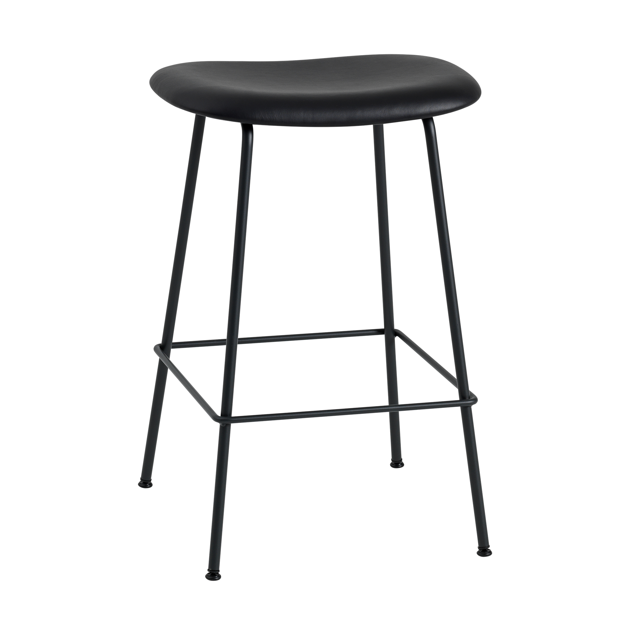 Muuto - Fiber Bar Stool Tube Base 65 cm Refine Leather Black/Black - Barstolar - Iskos-Berlin - Svart - Metall/Syntetiskt