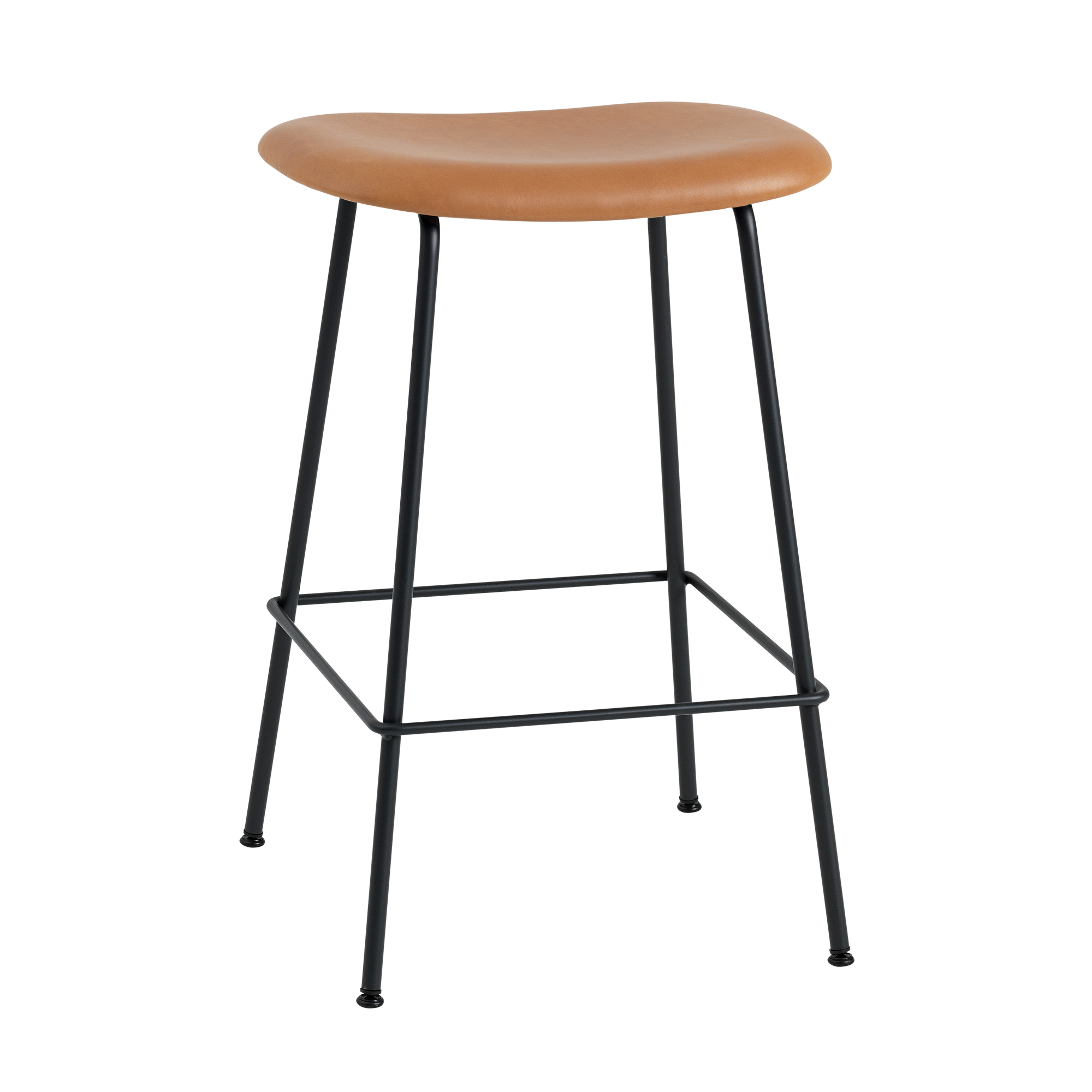 Muuto - Fiber Bar Stool Tube Base 65 cm Refine Leather Cognac/Black - Barstolar - Iskos-Berlin - Brun - Metall/Syntetiskt